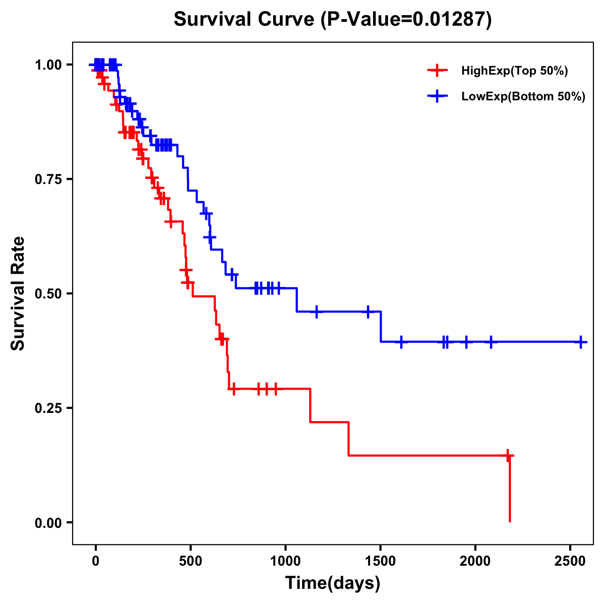 | Survival Curve of Pancreatic Cancer of Expression | Survival Curve of Pancreatic Cancer of Methylation | ||
