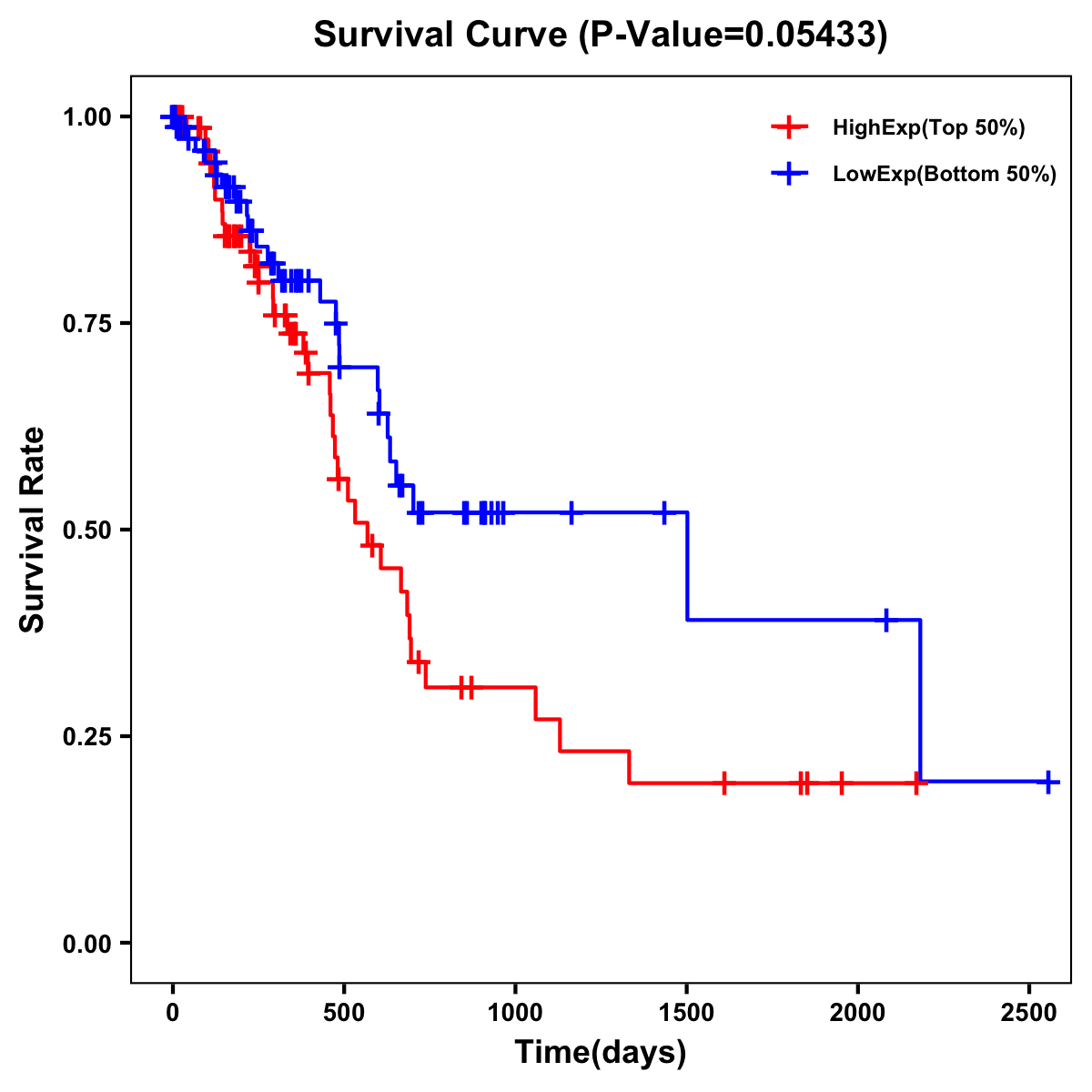 | Survival Curve of Pancreatic Cancer of Expression | Survival Curve of Pancreatic Cancer of Methylation | ||