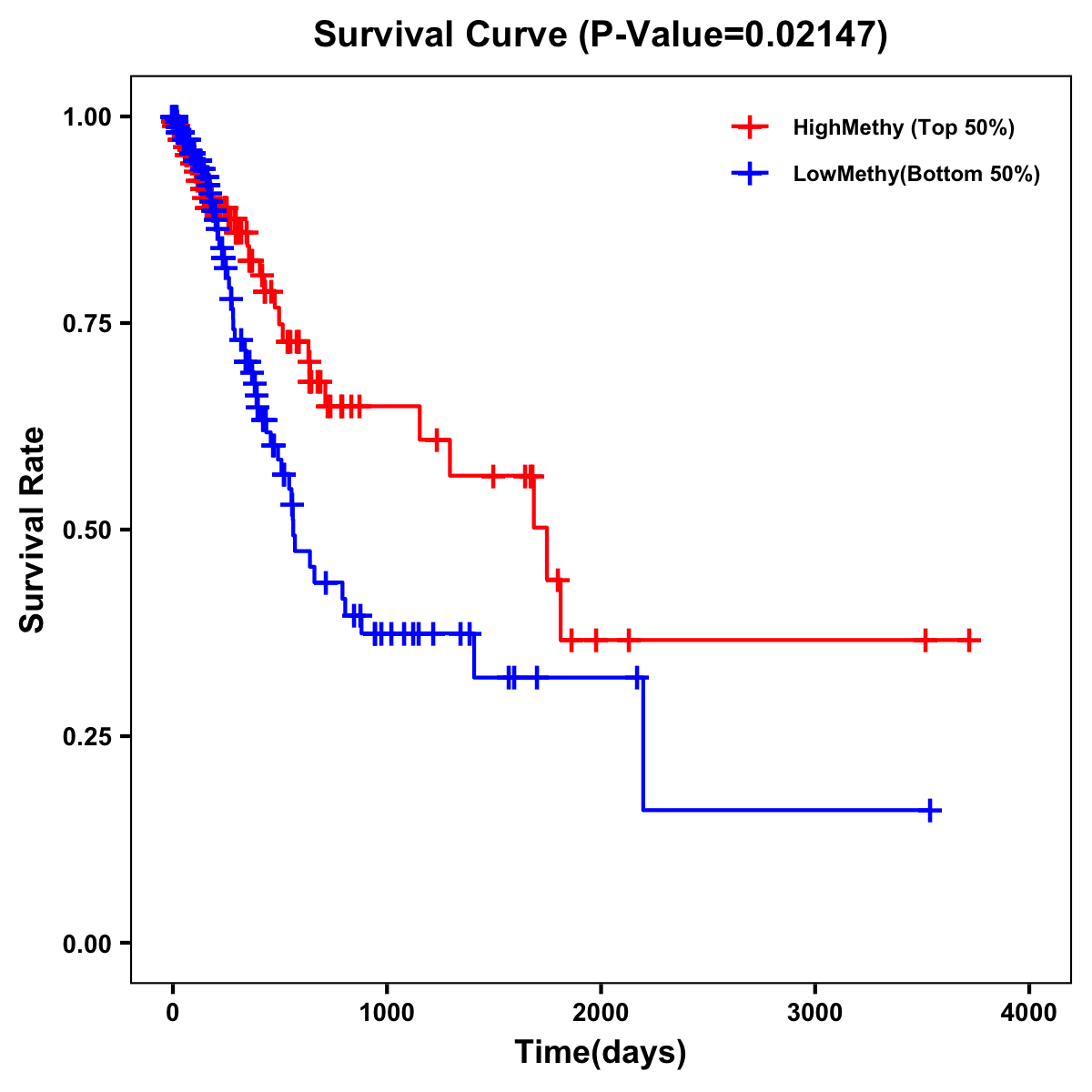 | Survival Curve of Stomach Cancer of Expression | Survival Curve of Stomach Cancer of Methylation | ||