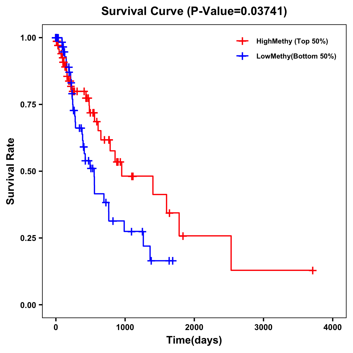 | Survival Curve of Esophagus Cancer of Expression | Survival Curve of Esophagus Cancer of Methylation | ||