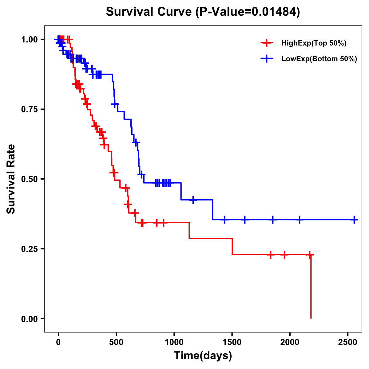 | Survival Curve of Pancreatic Cancer of Expression | Survival Curve of Pancreatic Cancer of Methylation | ||