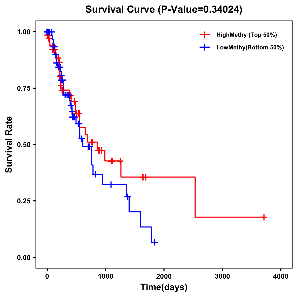 | Survival Curve of Esophagus Cancer of Expression | Survival Curve of Esophagus Cancer of Methylation | ||
