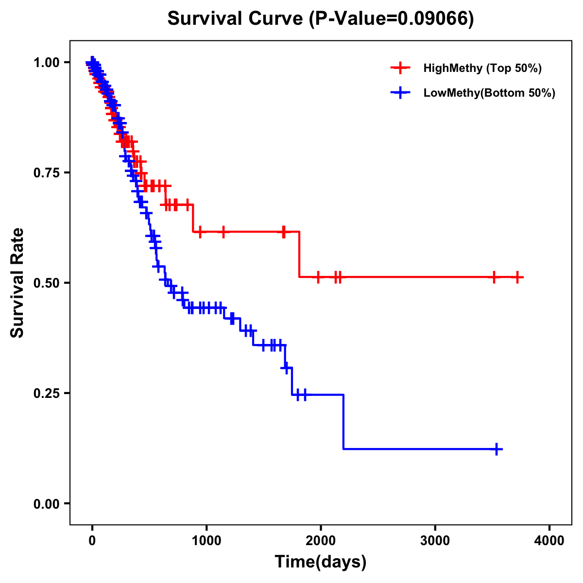 | Survival Curve of Stomach Cancer of Expression | Survival Curve of Stomach Cancer of Methylation | ||