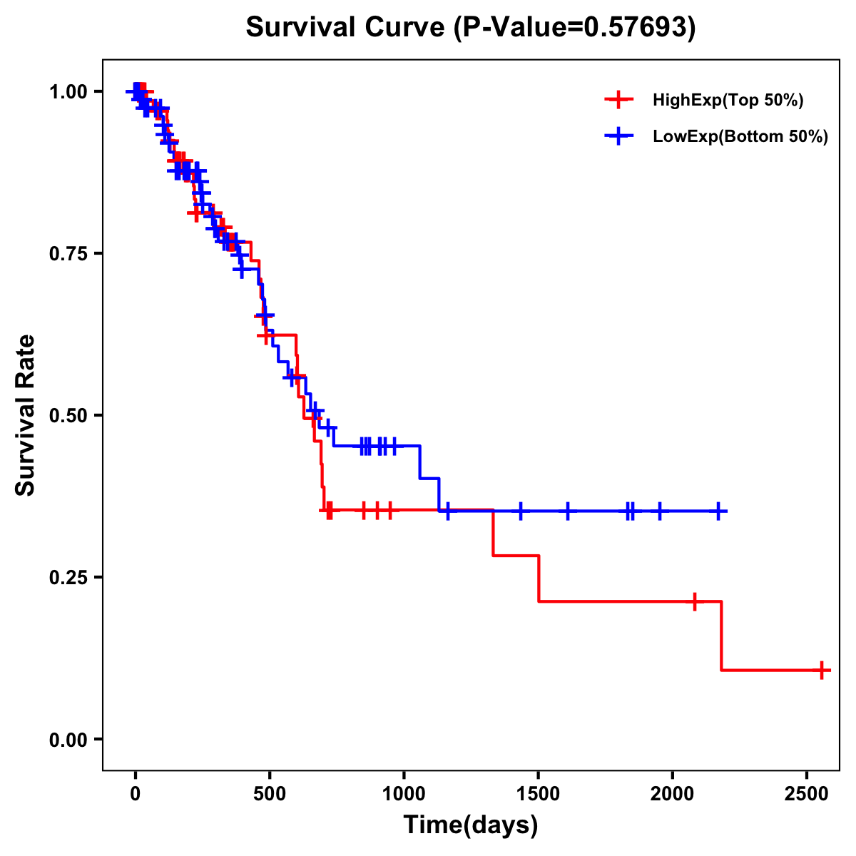 | Survival Curve of Pancreatic Cancer of Expression | Survival Curve of Pancreatic Cancer of Methylation | ||