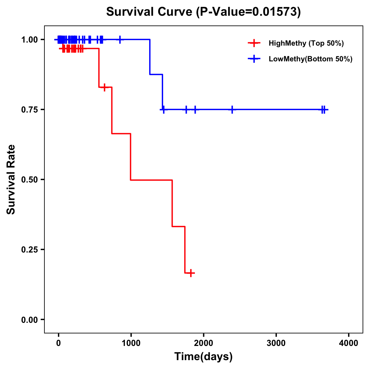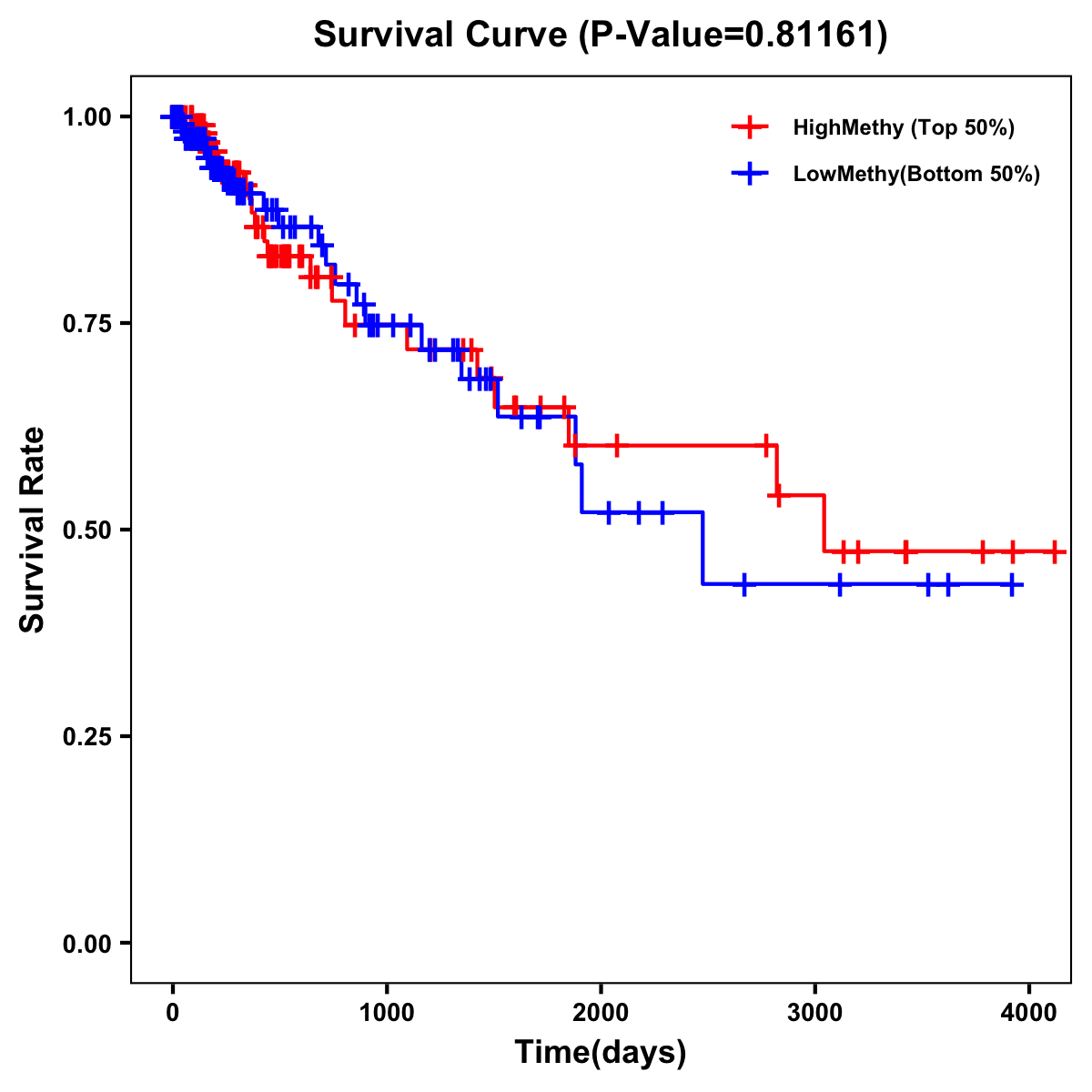 | Survival Curve of Colon Cancer on Methylation Level |
