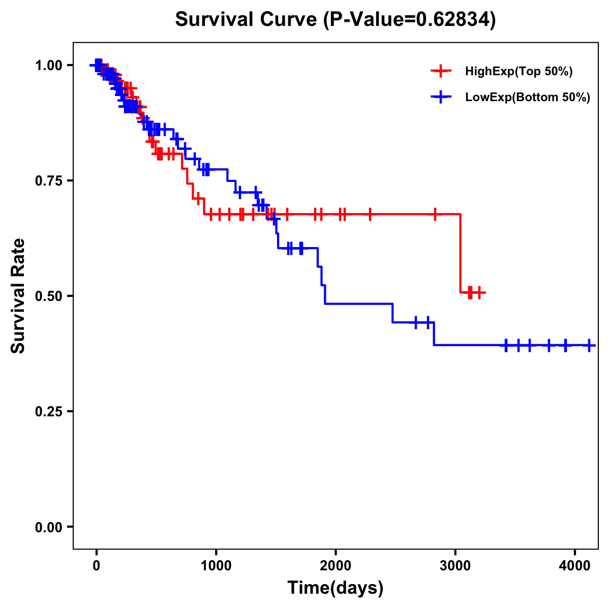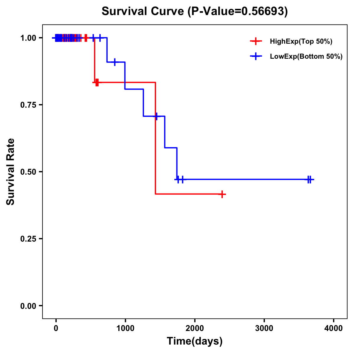| Survival Curve of Colon Cancer on Expression Level |