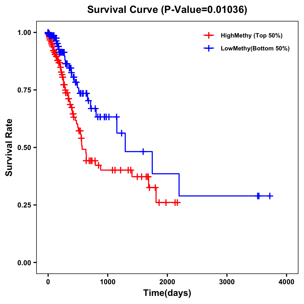 | Survival Curve of Stomach Cancer of Expression | Survival Curve of Stomach Cancer of Methylation | ||