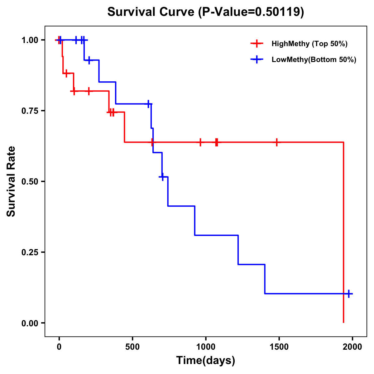 | Survival Curve of Biliary tract Cancer of Expression | Survival Curve of Biliary tract Cancer of Methylation | ||