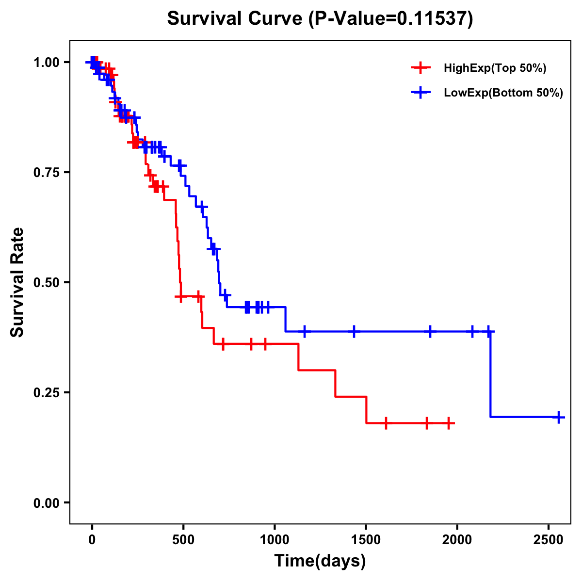 | Survival Curve of Pancreatic Cancer of Expression | Survival Curve of Pancreatic Cancer of Methylation | ||