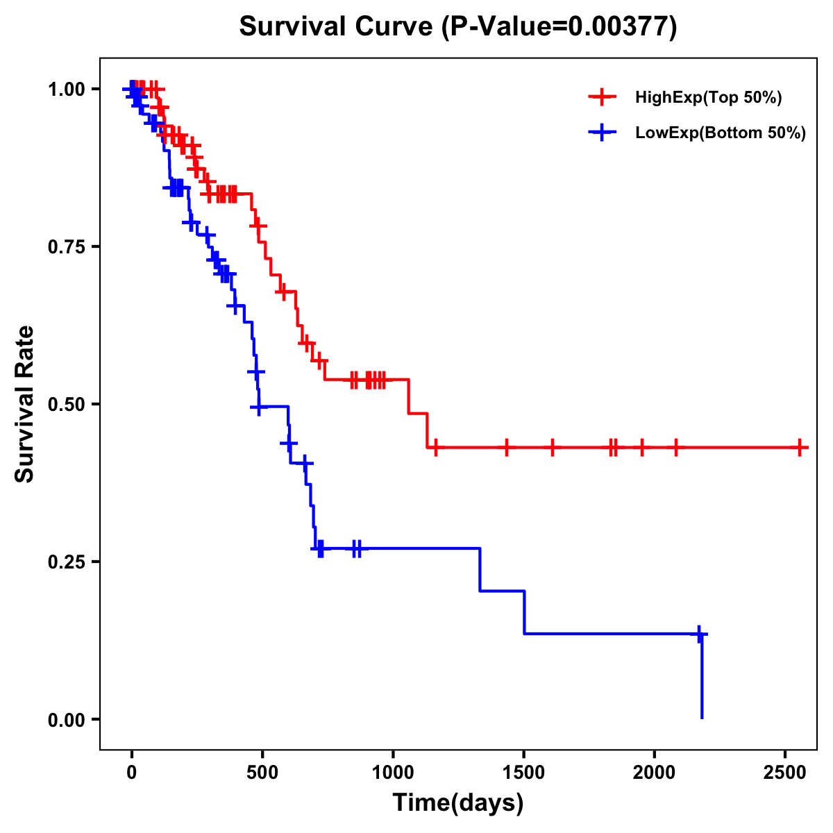 | Survival Curve of Pancreatic Cancer of Expression | Survival Curve of Pancreatic Cancer of Methylation | ||