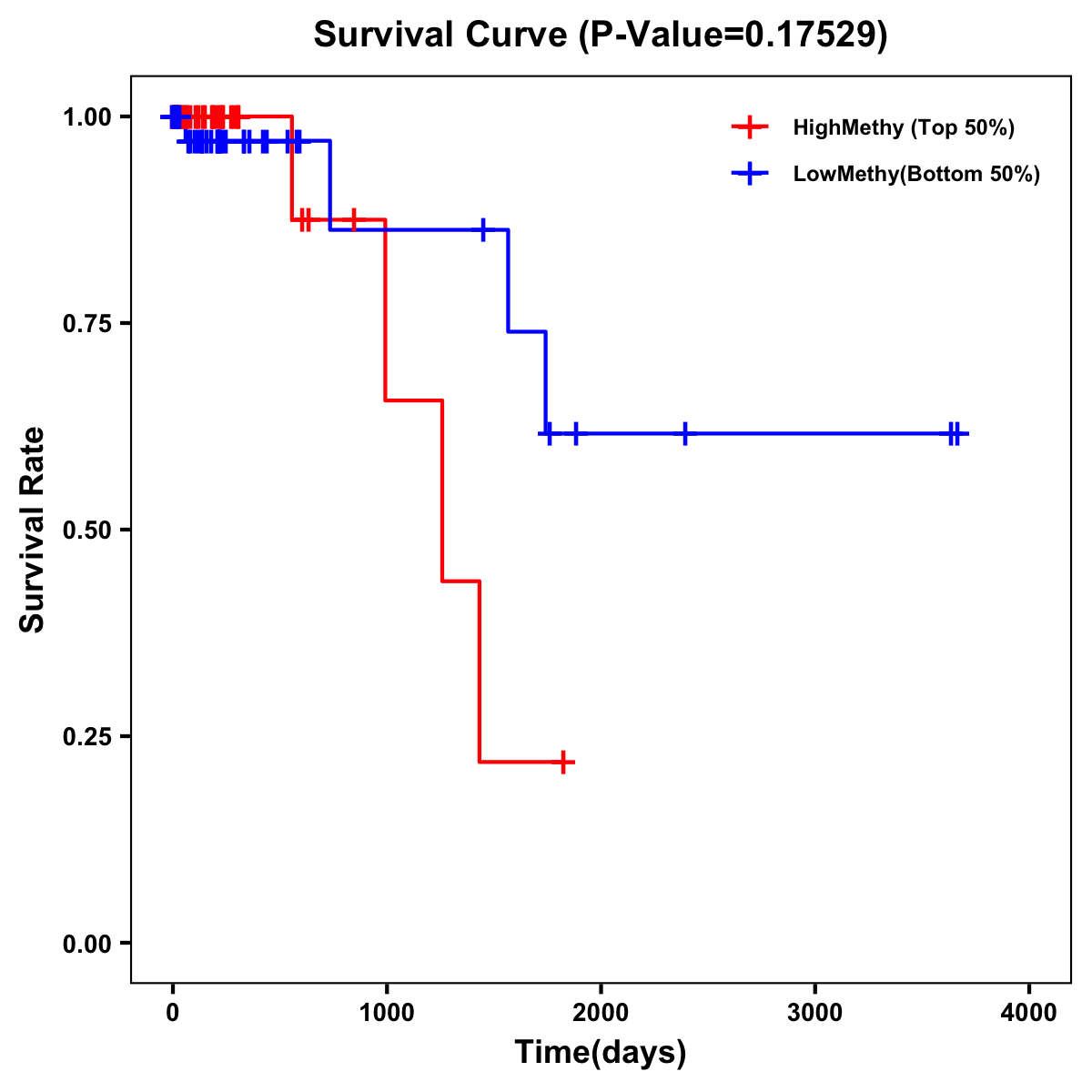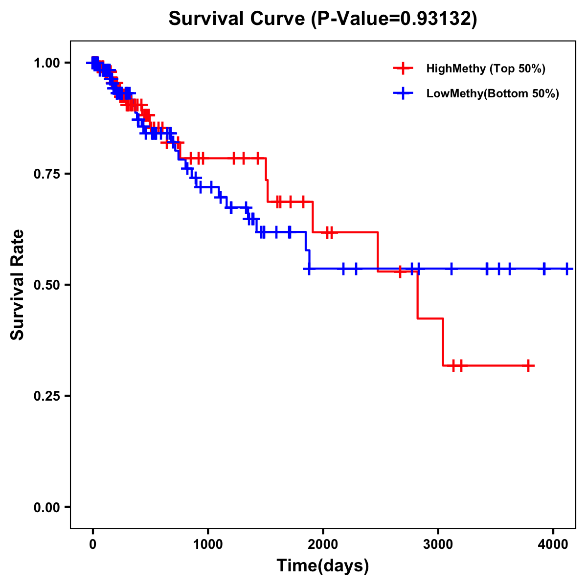 | Survival Curve of Colon Cancer on Methylation Level |