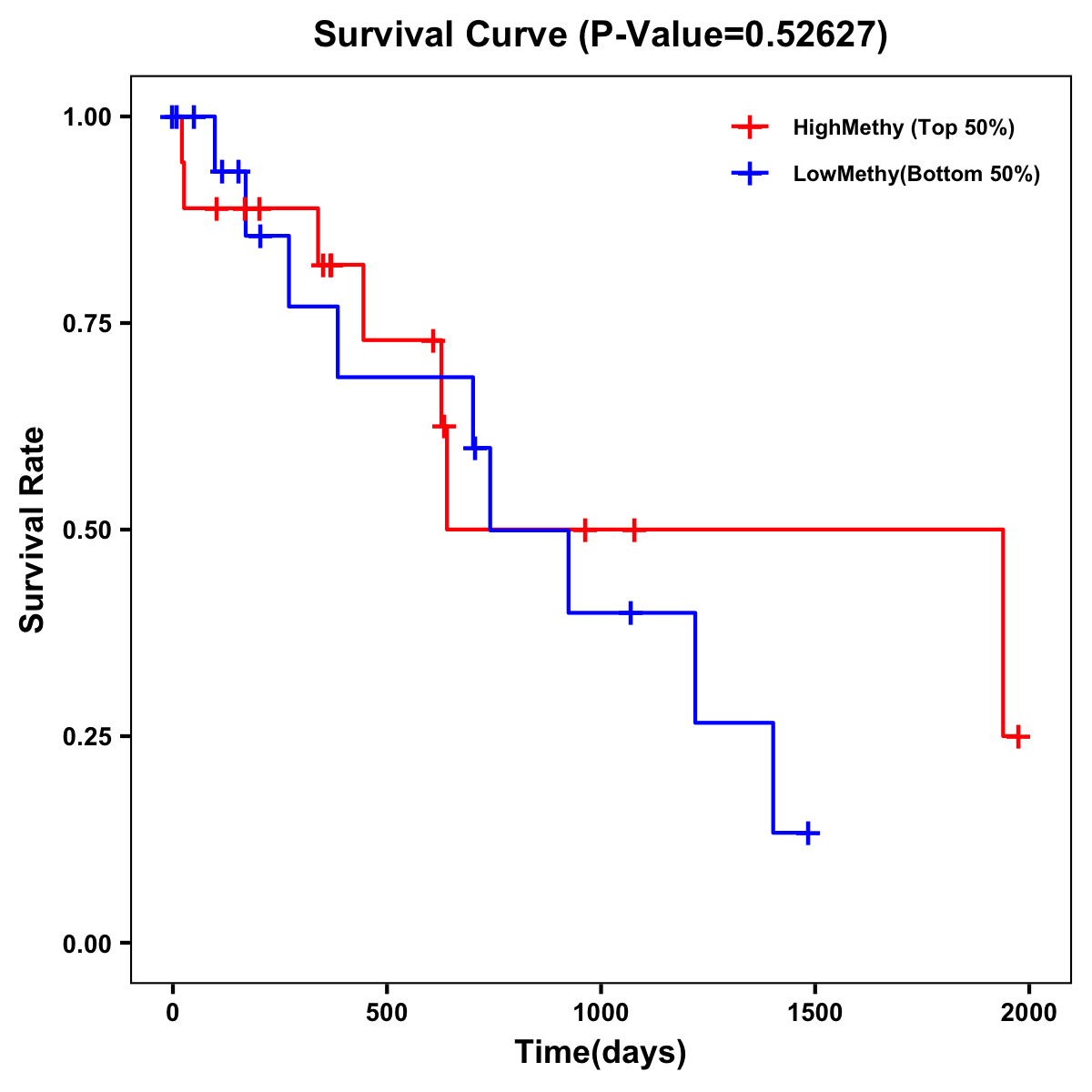 | Survival Curve of Biliary tract Cancer of Expression | Survival Curve of Biliary tract Cancer of Methylation | ||