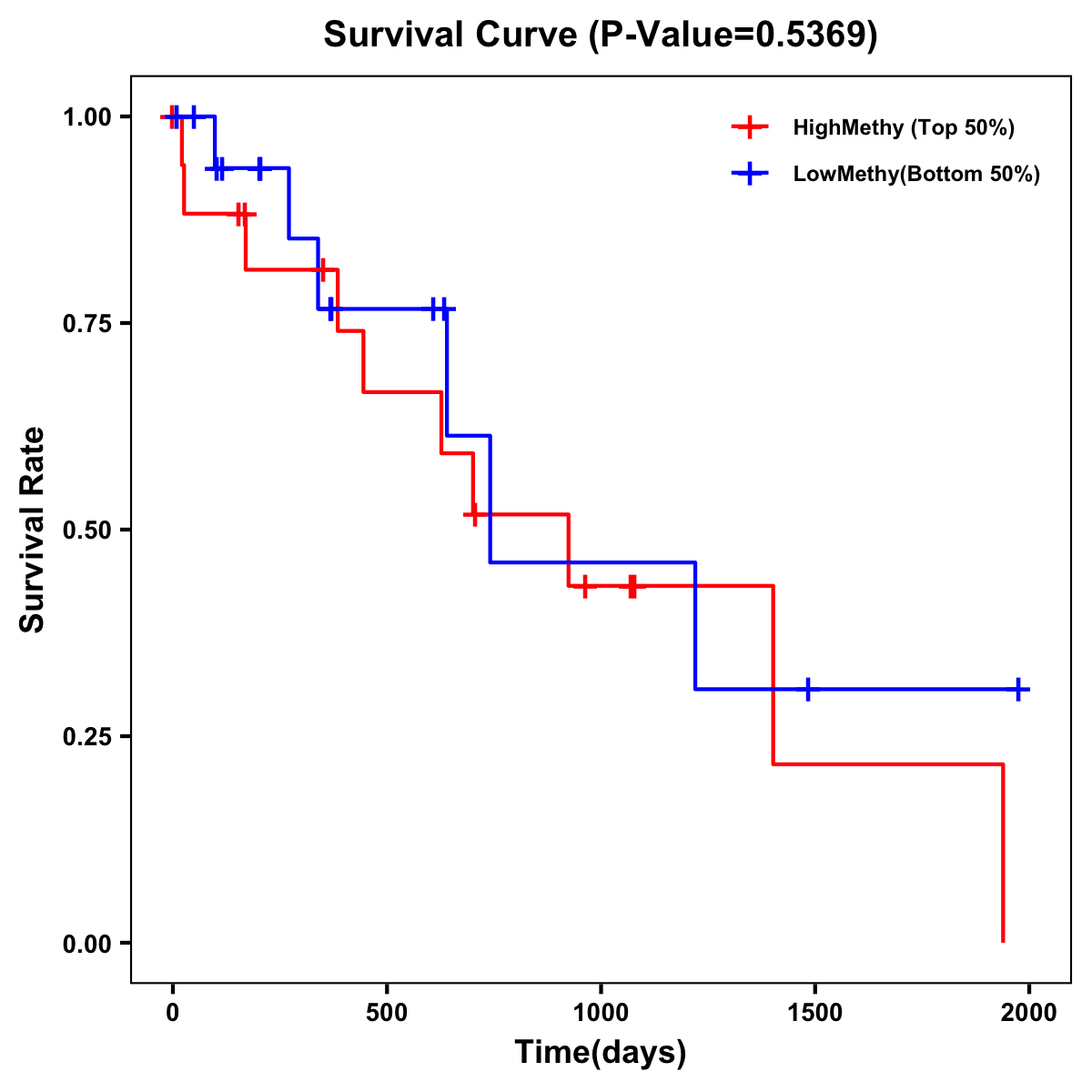 | Survival Curve of Biliary tract Cancer of Expression | Survival Curve of Biliary tract Cancer of Methylation | ||