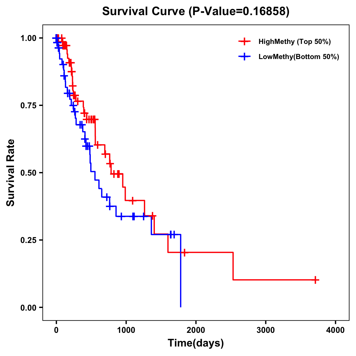 | Survival Curve of Esophagus Cancer of Expression | Survival Curve of Esophagus Cancer of Methylation | ||