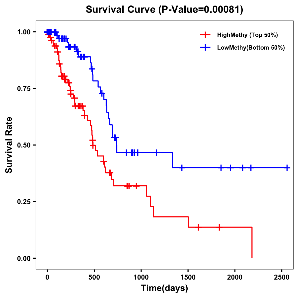 | Survival Curve of Pancreatic Cancer of Expression | Survival Curve of Pancreatic Cancer of Methylation | ||