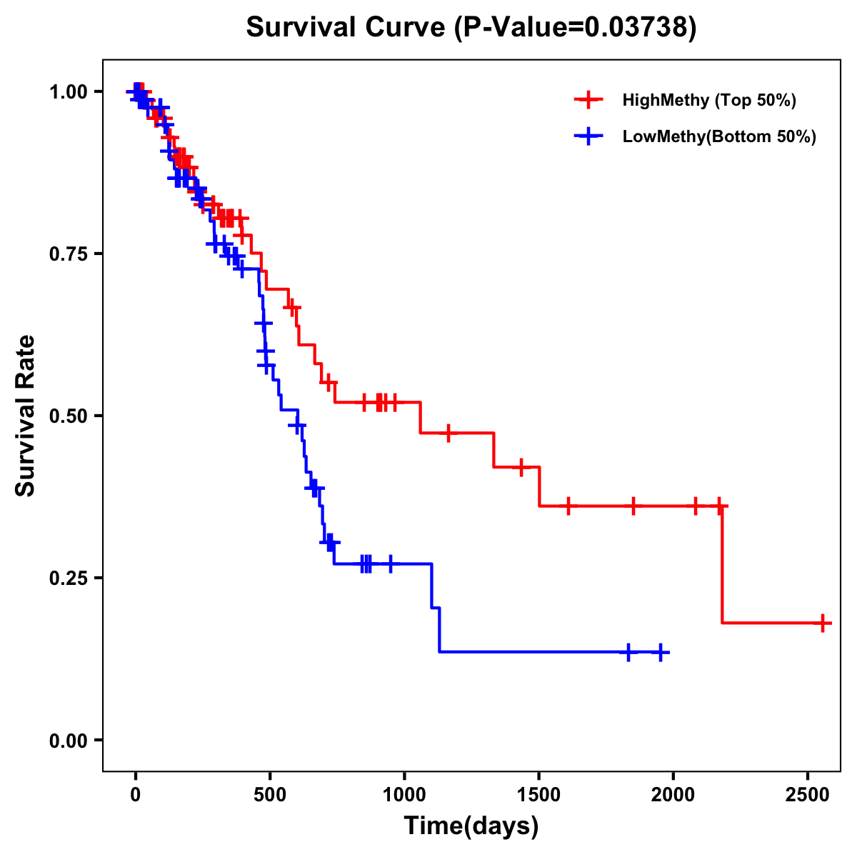 | Survival Curve of Pancreatic Cancer of Expression | Survival Curve of Pancreatic Cancer of Methylation | ||