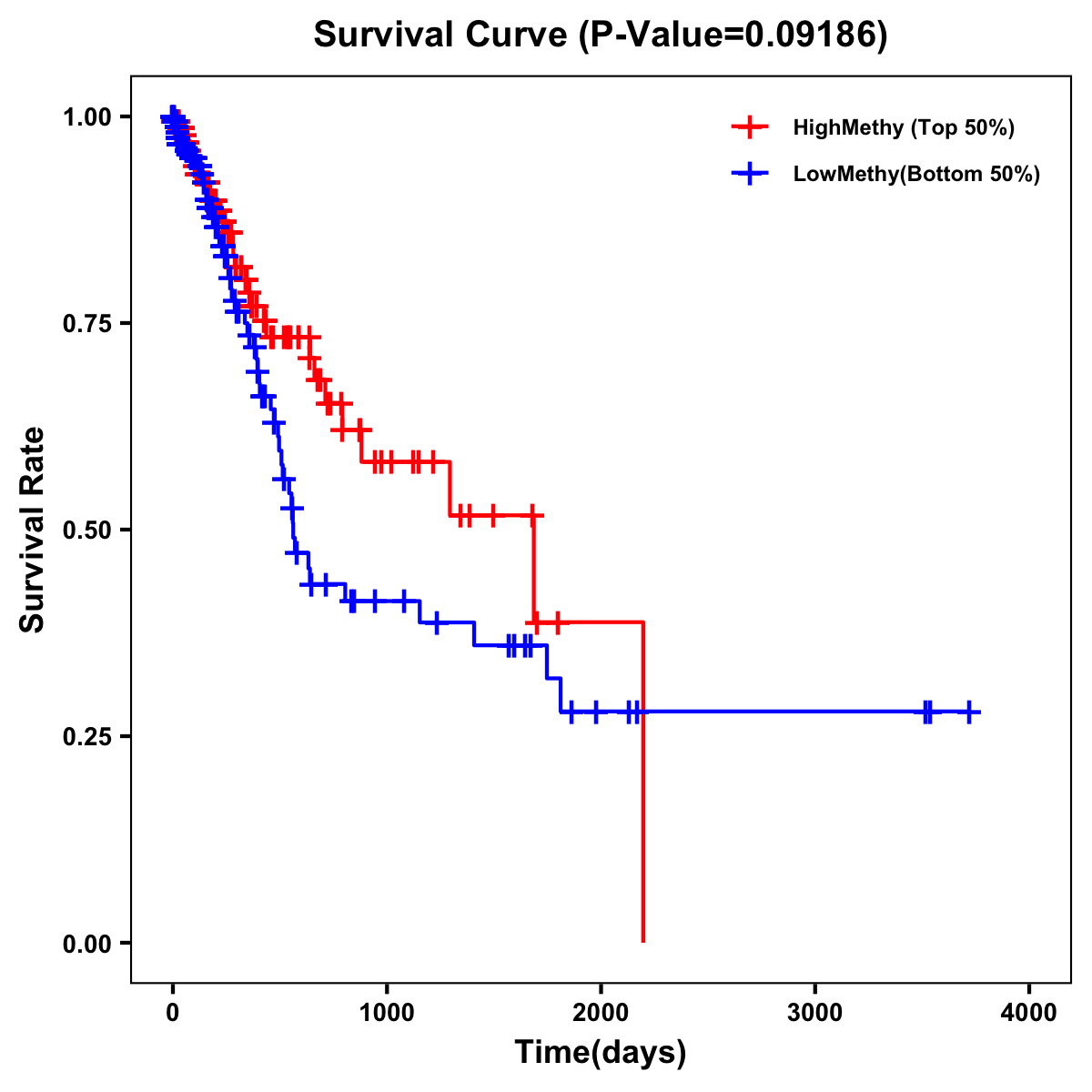 | Survival Curve of Stomach Cancer of Expression | Survival Curve of Stomach Cancer of Methylation | ||