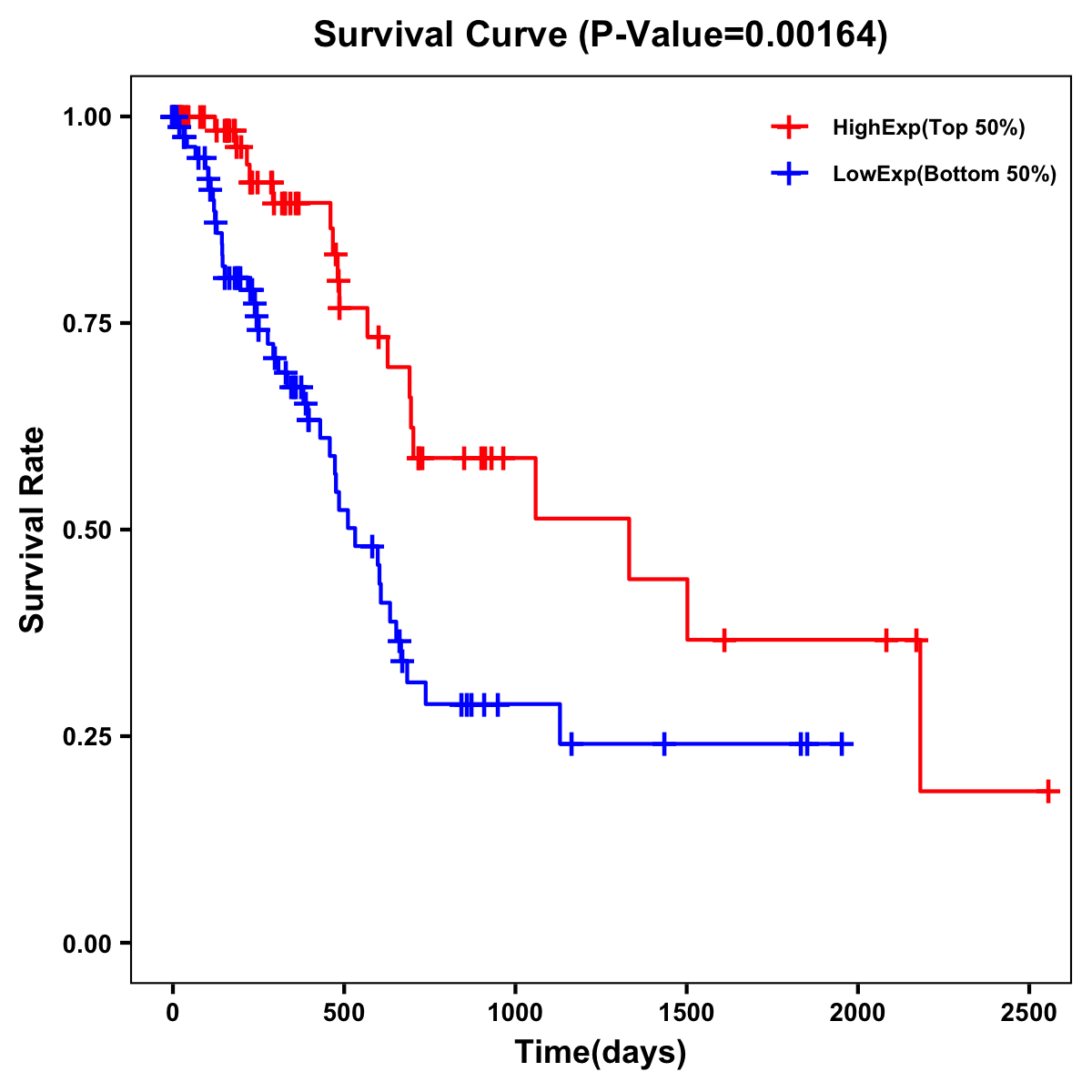 | Survival Curve of Pancreatic Cancer of Expression | Survival Curve of Pancreatic Cancer of Methylation | ||
