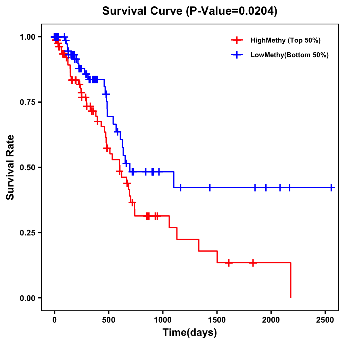 | Survival Curve of Pancreatic Cancer of Expression | Survival Curve of Pancreatic Cancer of Methylation | ||