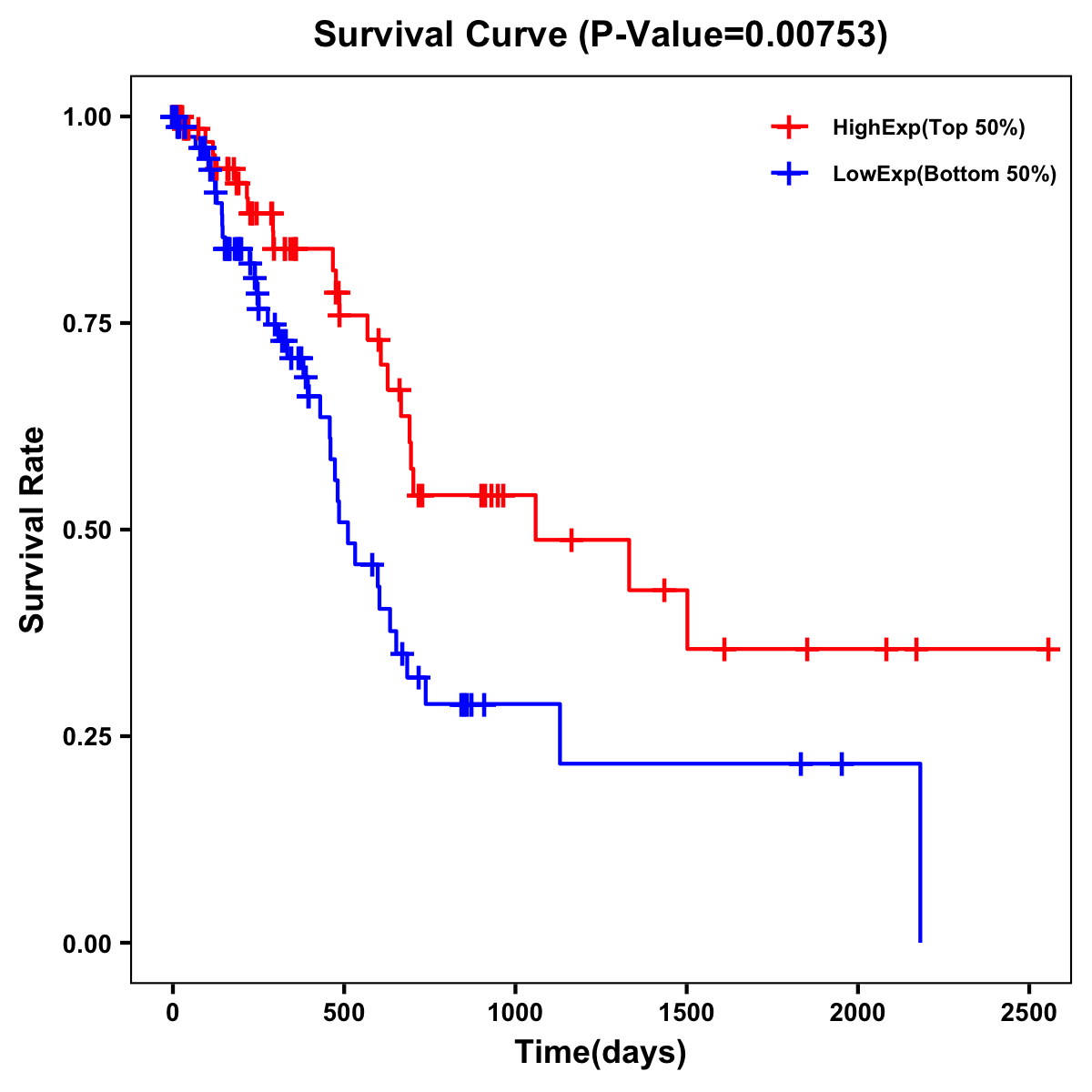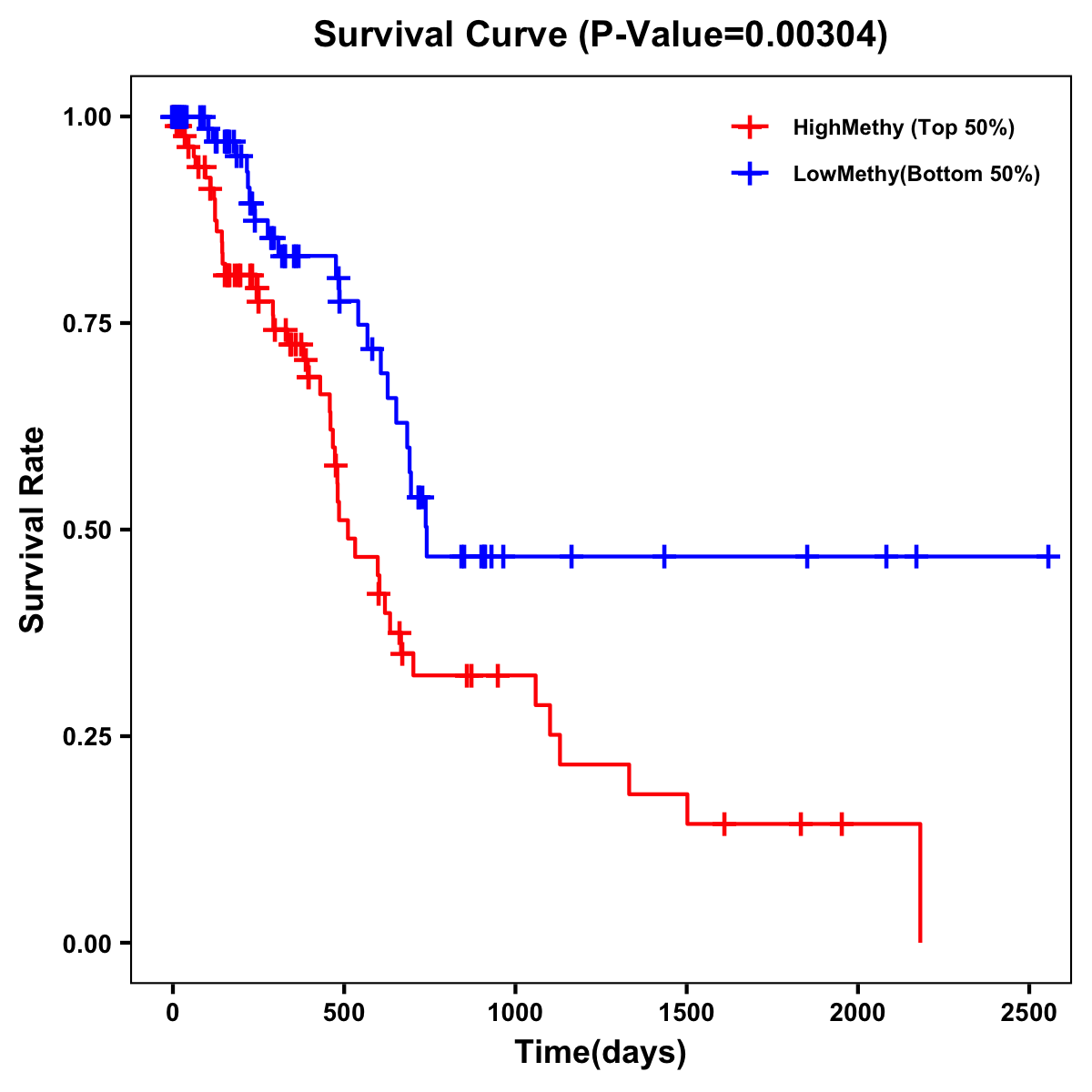 | Survival Curve of Pancreatic Cancer of Expression | Survival Curve of Pancreatic Cancer of Methylation | ||