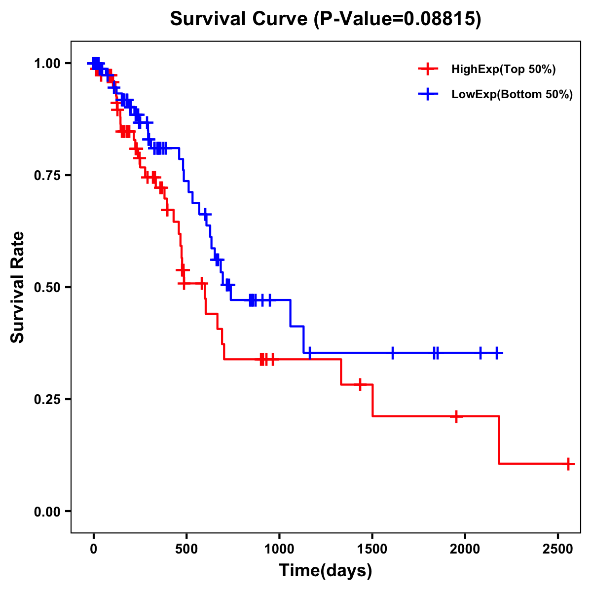 | Survival Curve of Pancreatic Cancer of Expression | Survival Curve of Pancreatic Cancer of Methylation | ||