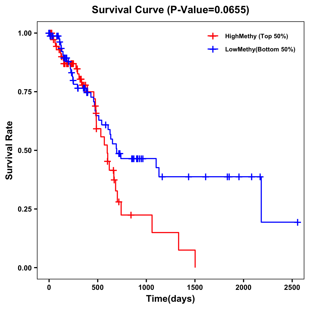 | Survival Curve of Pancreatic Cancer of Expression | Survival Curve of Pancreatic Cancer of Methylation | ||