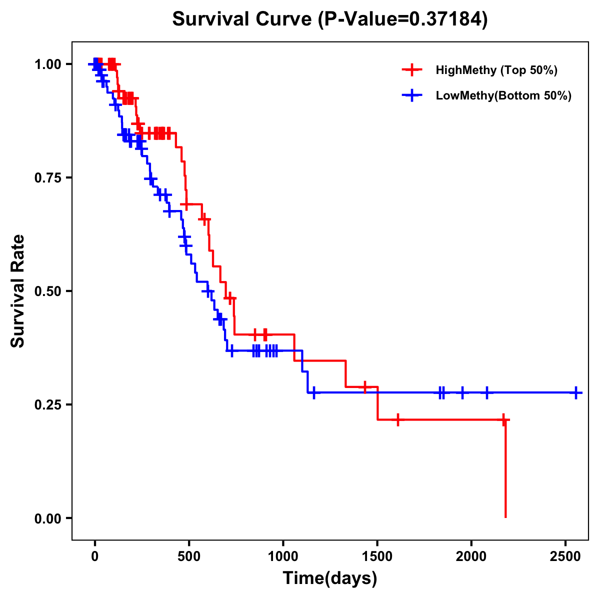 | Survival Curve of Pancreatic Cancer of Expression | Survival Curve of Pancreatic Cancer of Methylation | ||