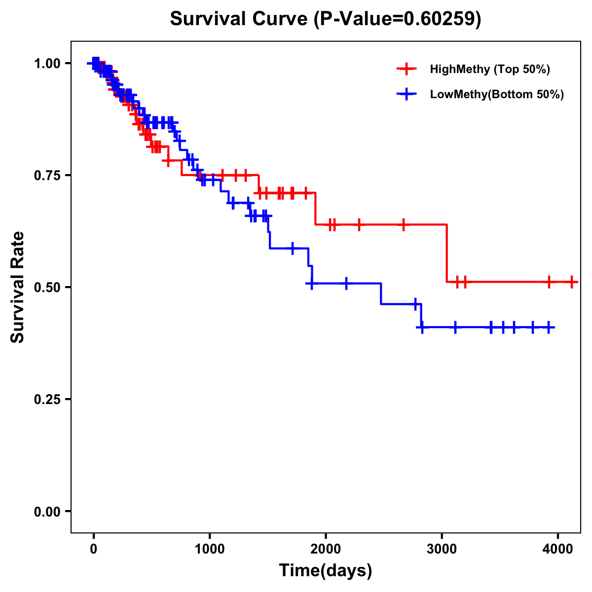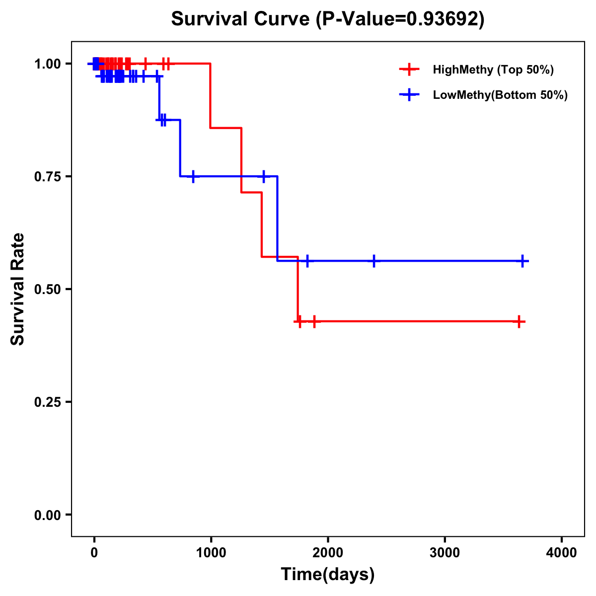 | Survival Curve of Colon Cancer on Methylation Level |