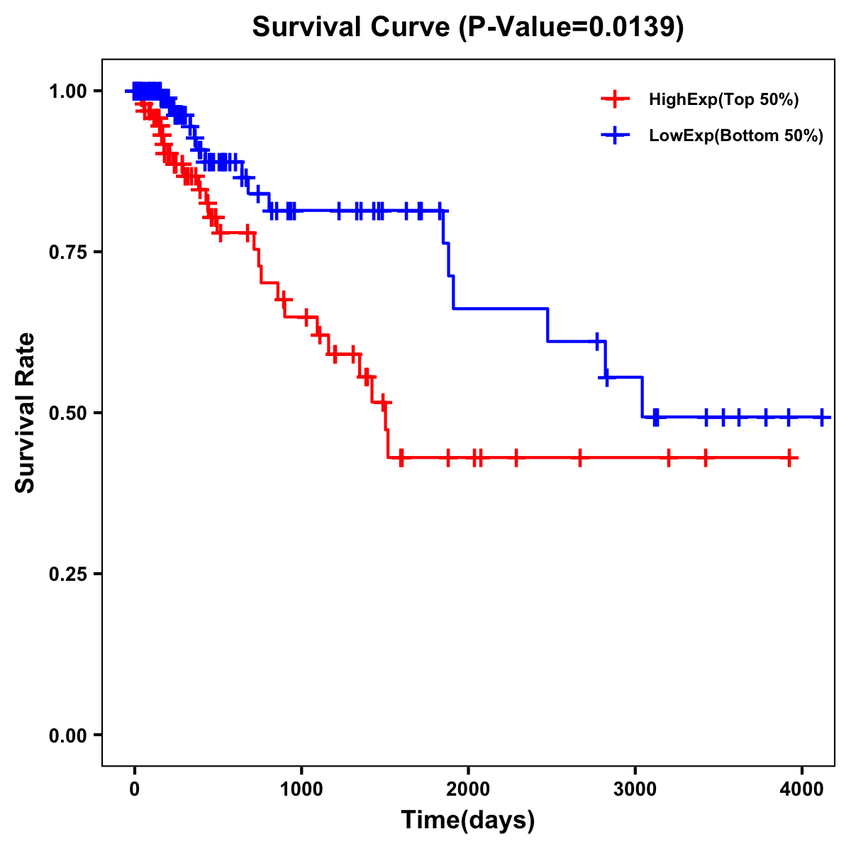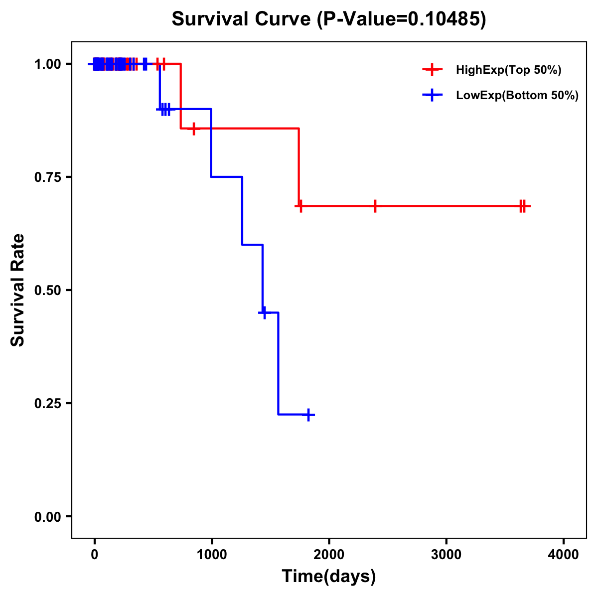 | Survival Curve of Colon Cancer on Expression Level |