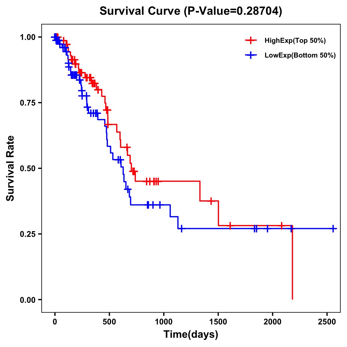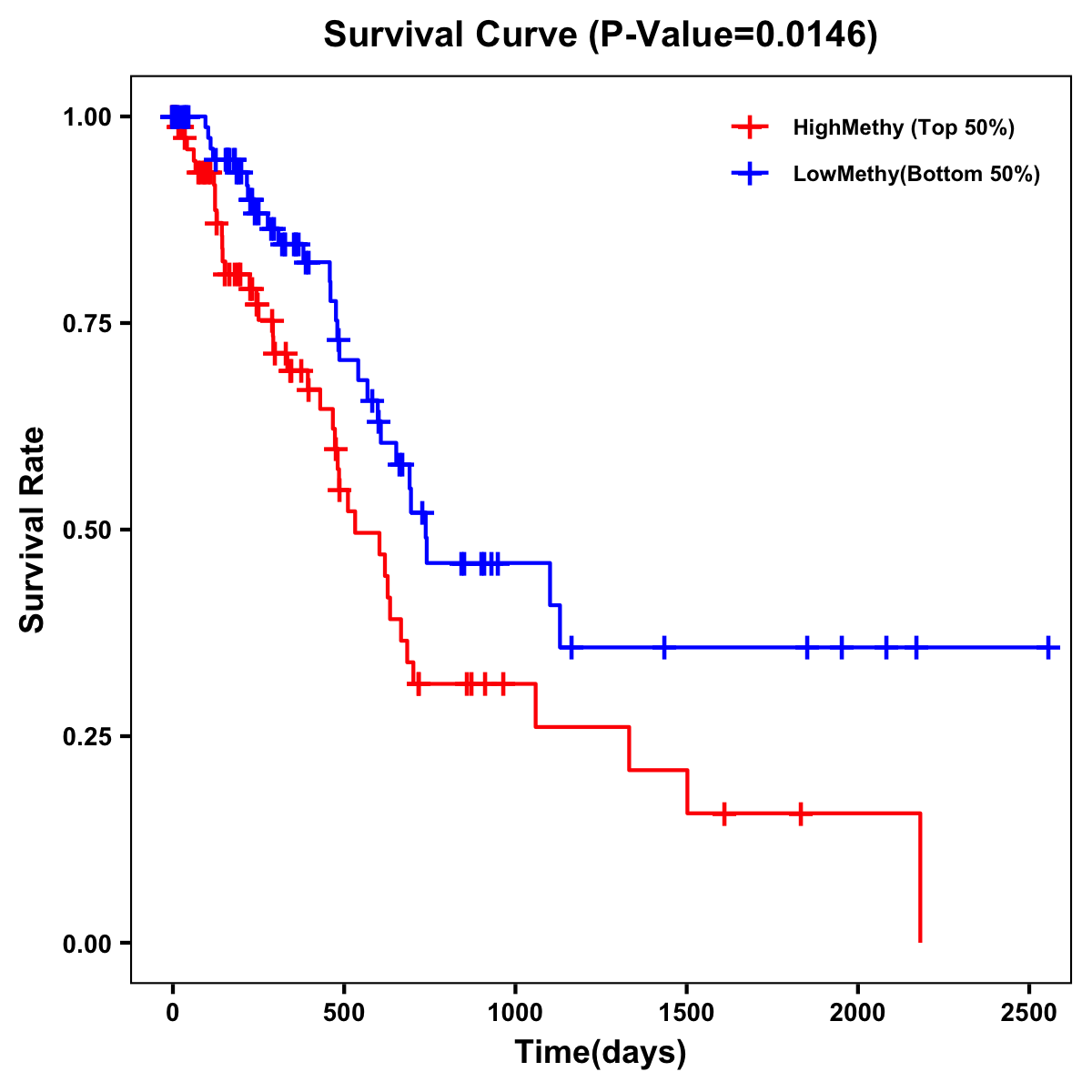 | Survival Curve of Pancreatic Cancer of Expression | Survival Curve of Pancreatic Cancer of Methylation | ||
