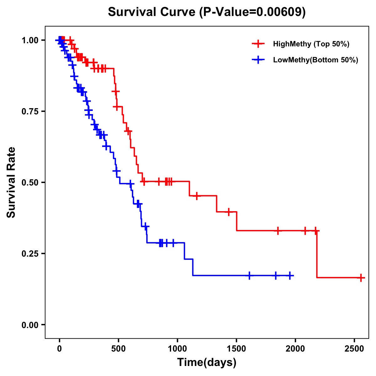 | Survival Curve of Pancreatic Cancer of Expression | Survival Curve of Pancreatic Cancer of Methylation | ||