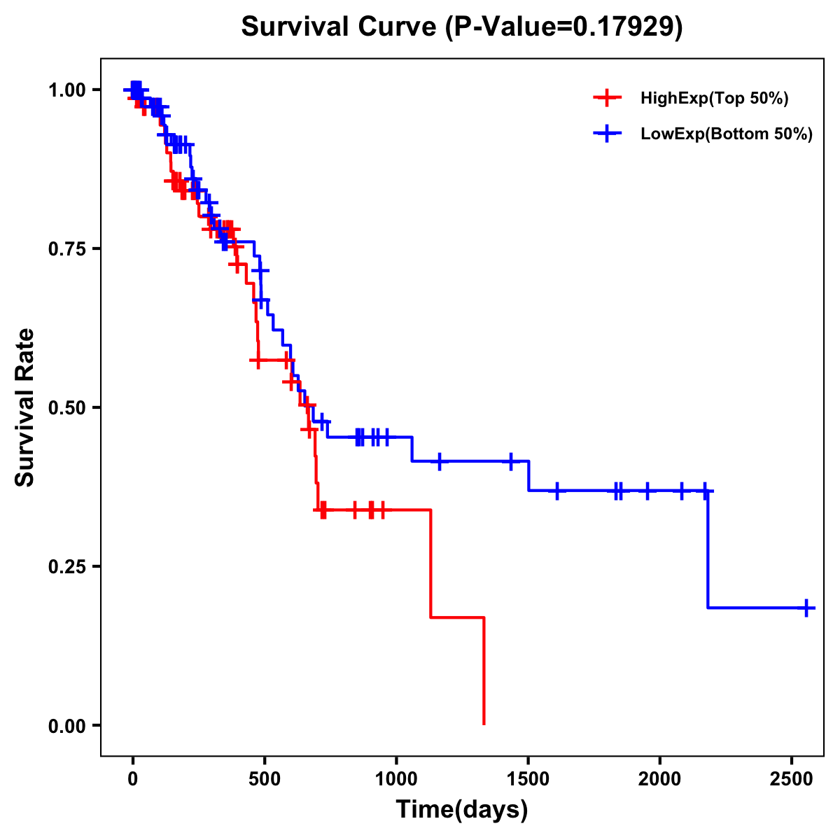 | Survival Curve of Pancreatic Cancer of Expression | Survival Curve of Pancreatic Cancer of Methylation | ||