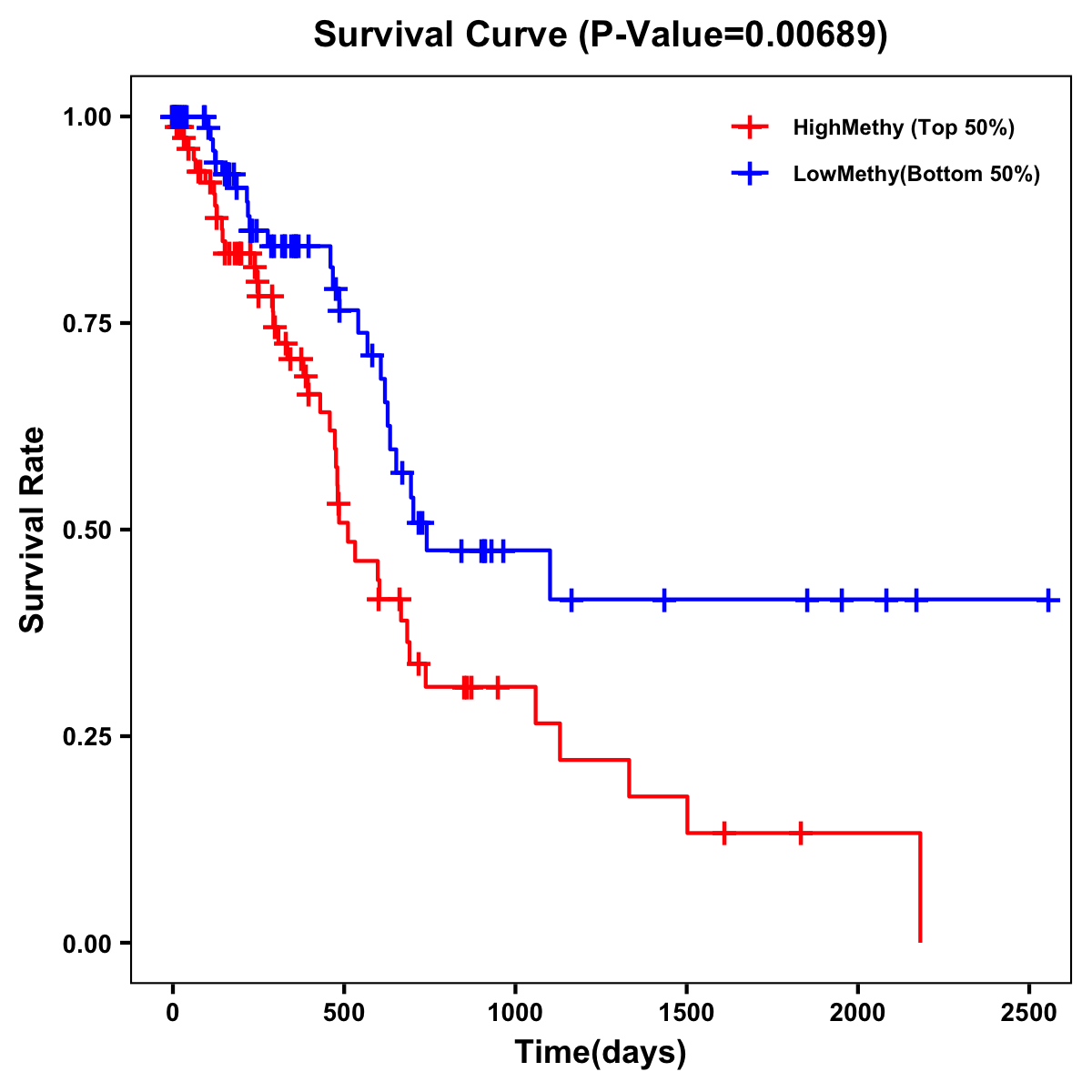 | Survival Curve of Pancreatic Cancer of Expression | Survival Curve of Pancreatic Cancer of Methylation | ||