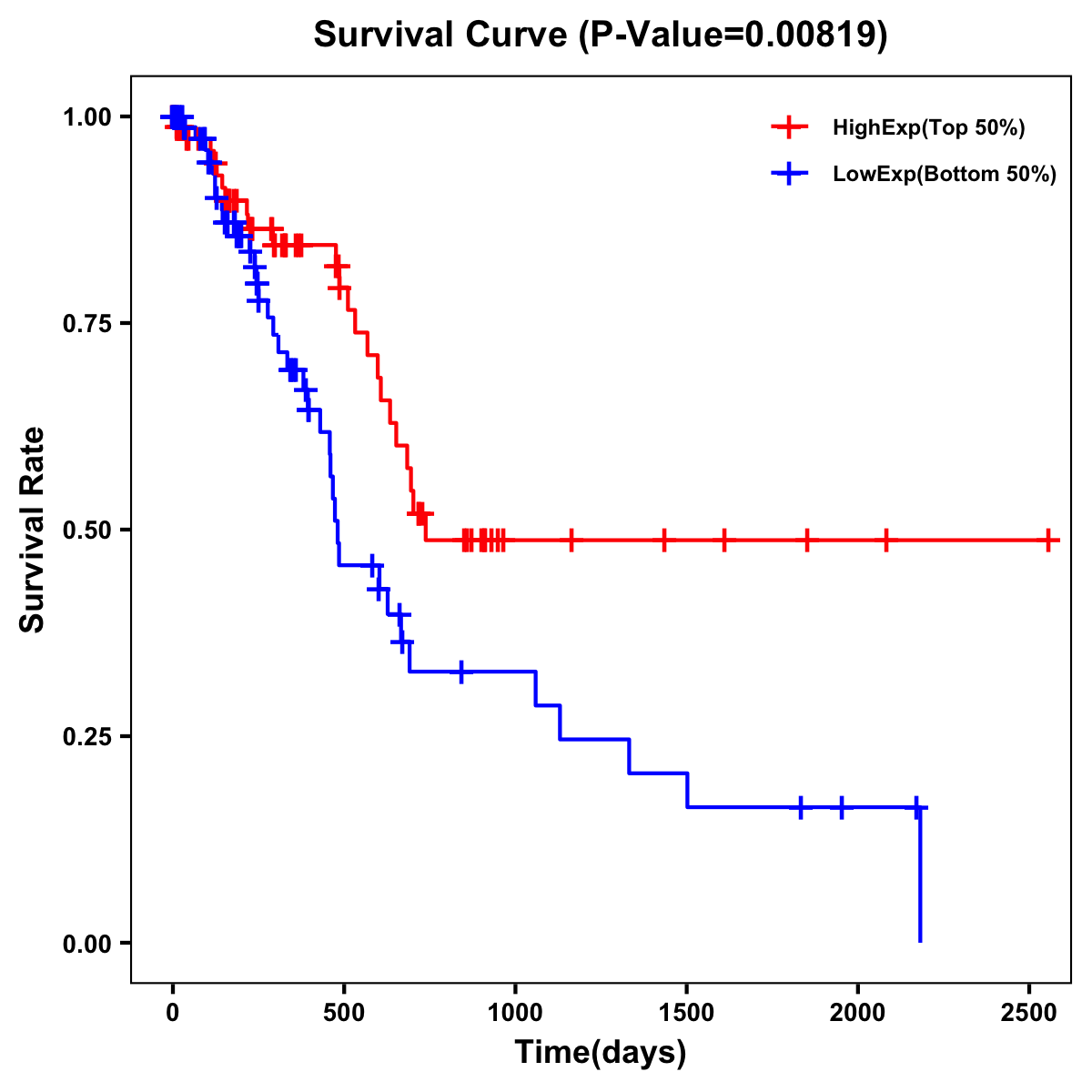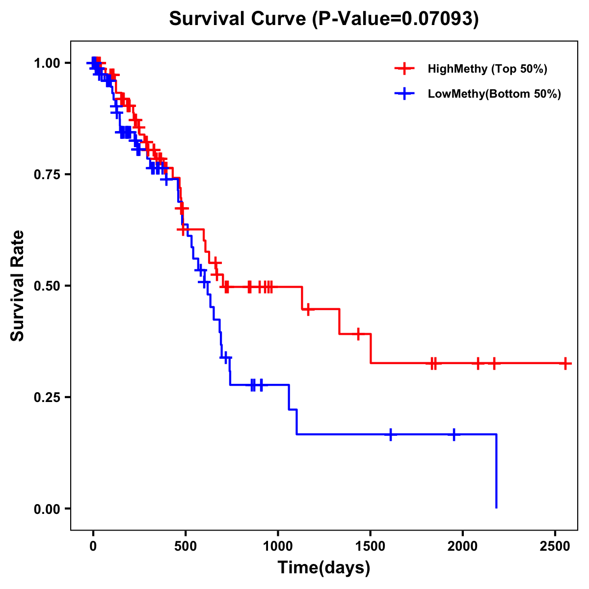 | Survival Curve of Pancreatic Cancer of Expression | Survival Curve of Pancreatic Cancer of Methylation | ||