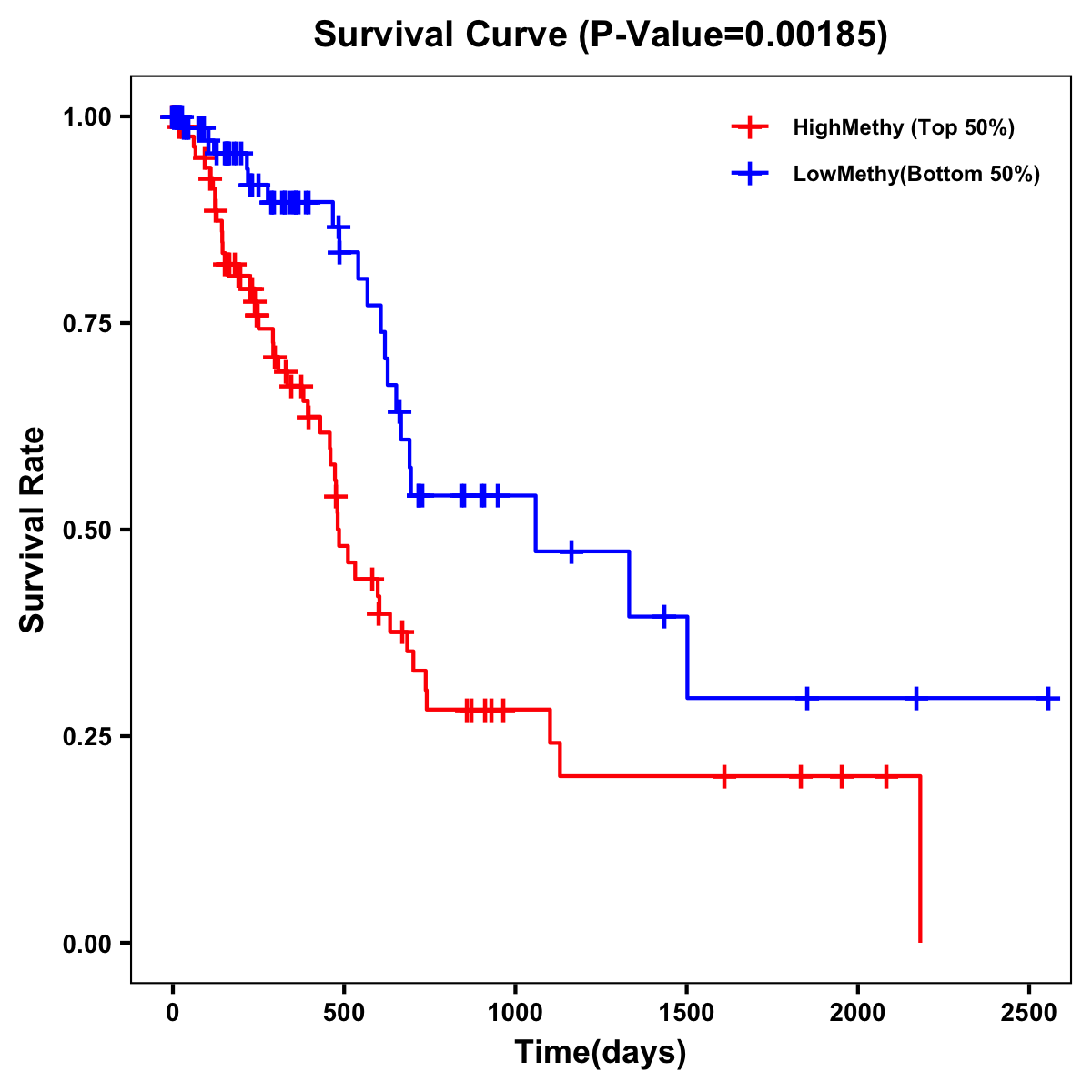 | Survival Curve of Pancreatic Cancer of Expression | Survival Curve of Pancreatic Cancer of Methylation | ||