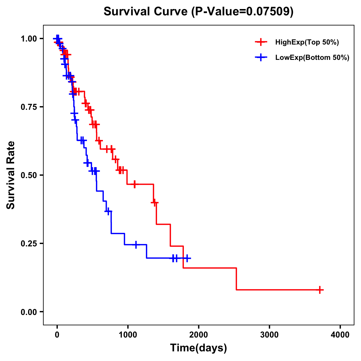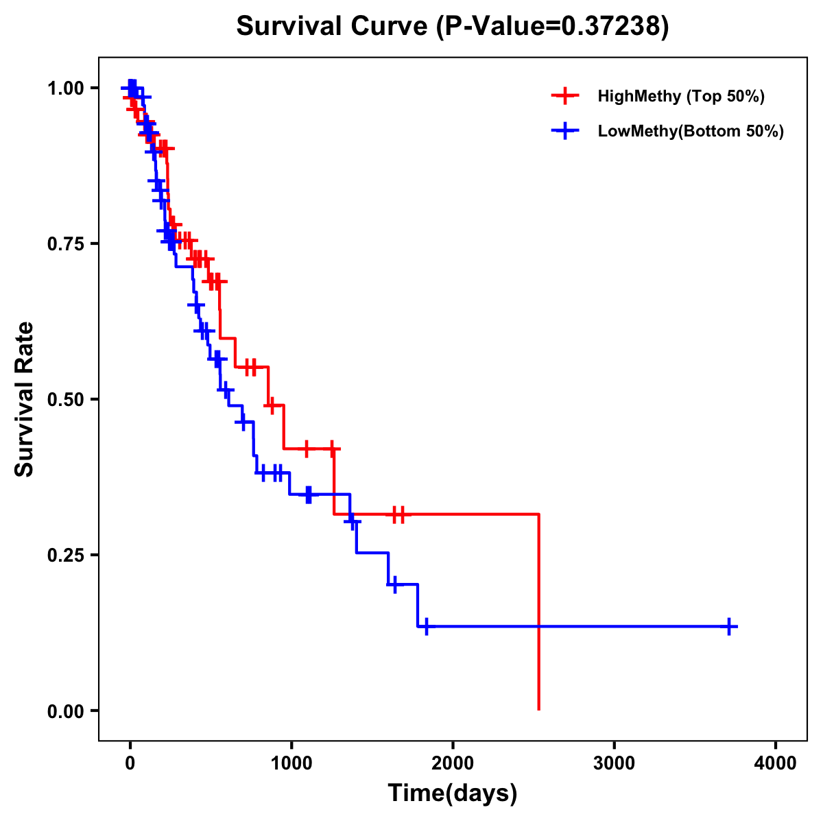 | Survival Curve of Esophagus Cancer of Expression | Survival Curve of Esophagus Cancer of Methylation | ||
