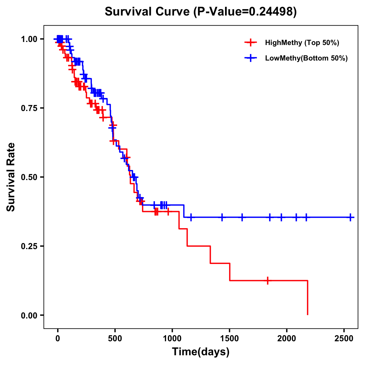 | Survival Curve of Pancreatic Cancer of Expression | Survival Curve of Pancreatic Cancer of Methylation | ||