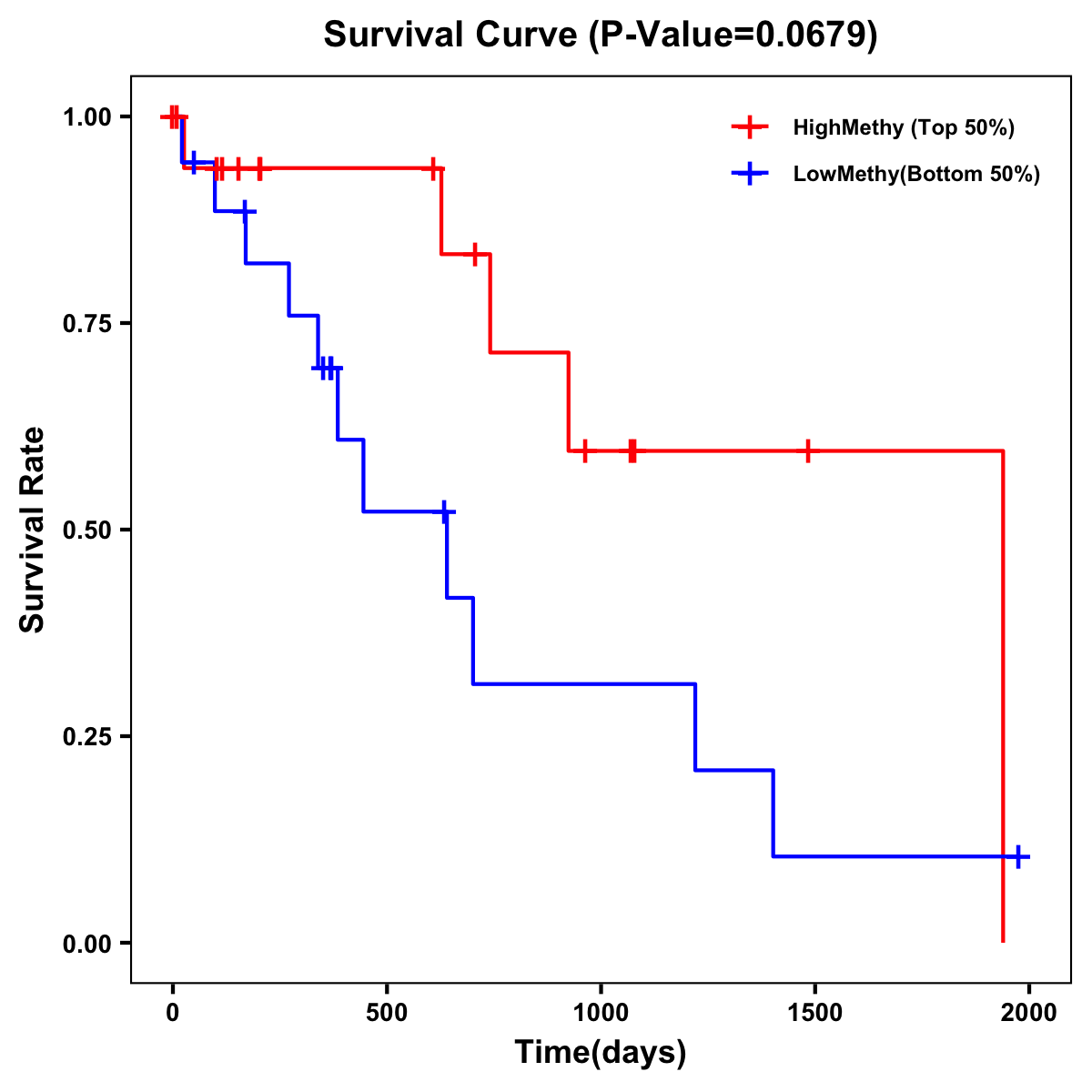 | Survival Curve of Biliary tract Cancer of Expression | Survival Curve of Biliary tract Cancer of Methylation | ||
