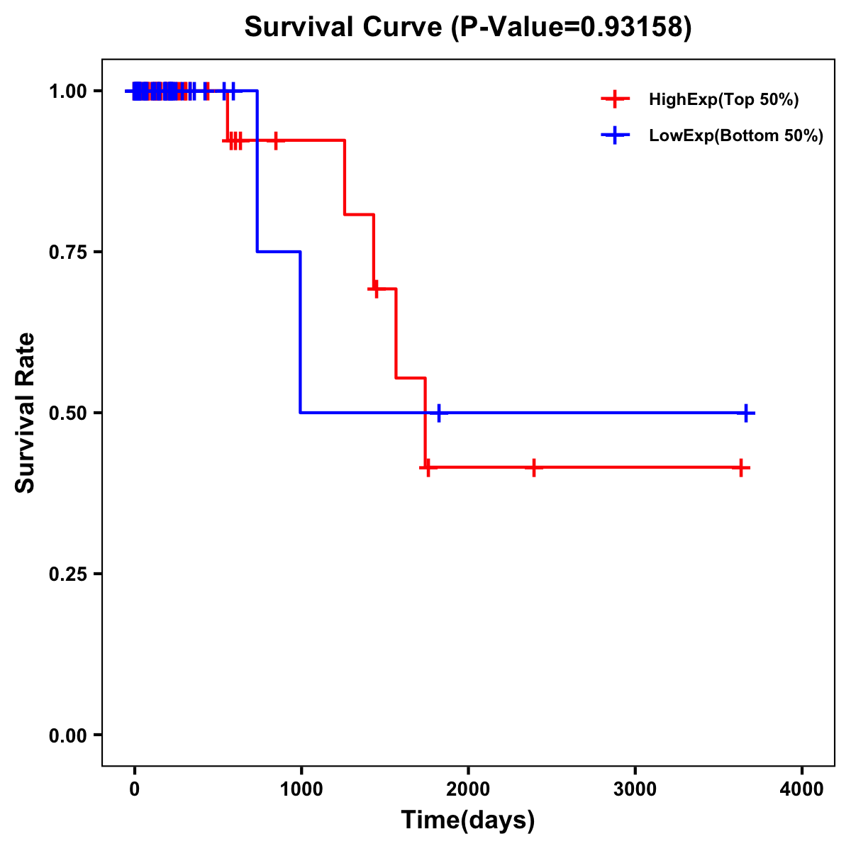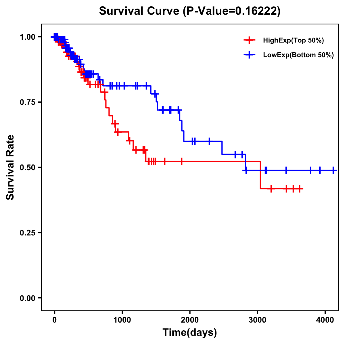| Survival Curve of Colon Cancer on Expression Level |