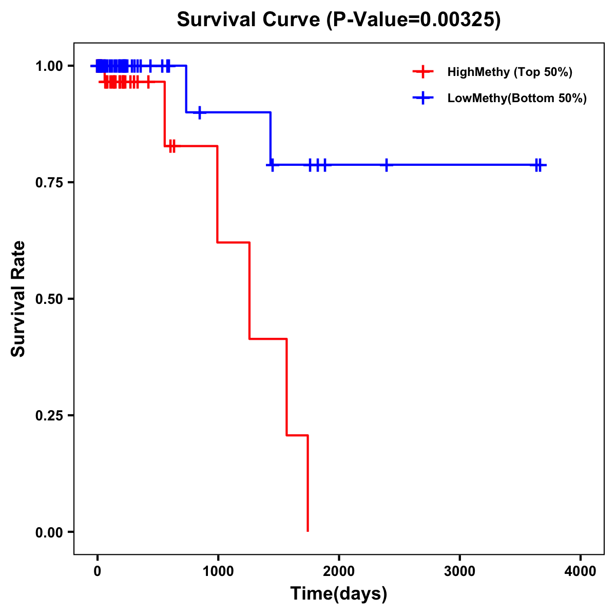 | Survival Curve of Colon Cancer on Methylation Level |