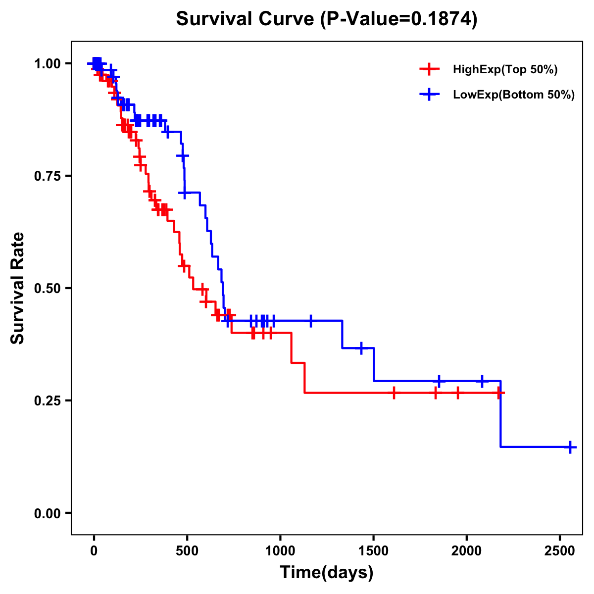 | Survival Curve of Pancreatic Cancer of Expression | Survival Curve of Pancreatic Cancer of Methylation | ||