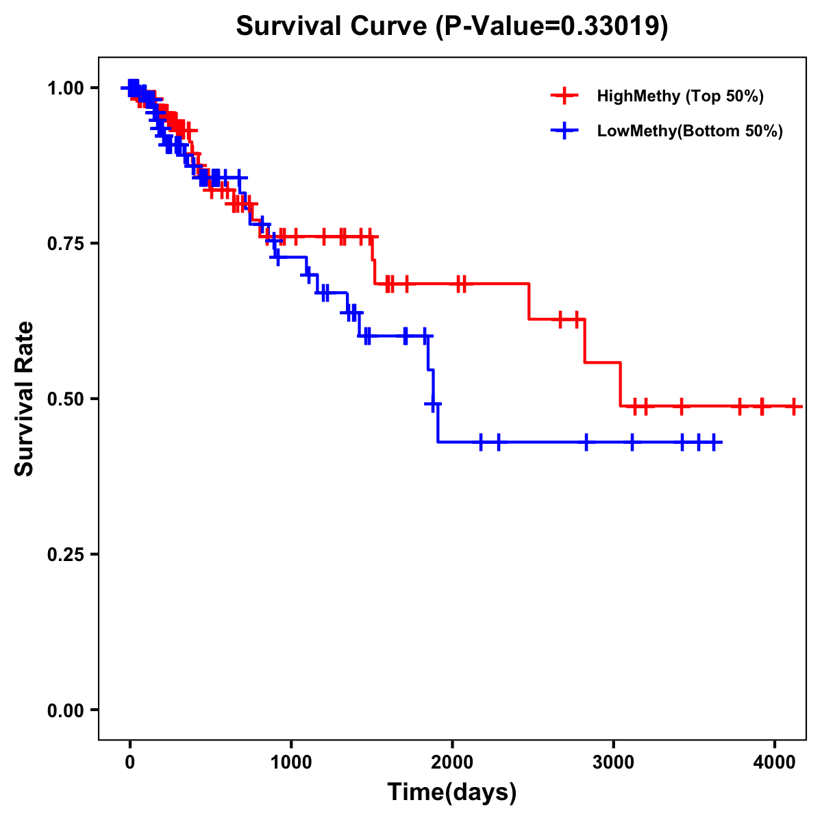 | Survival Curve of Colon Cancer on Methylation Level |
