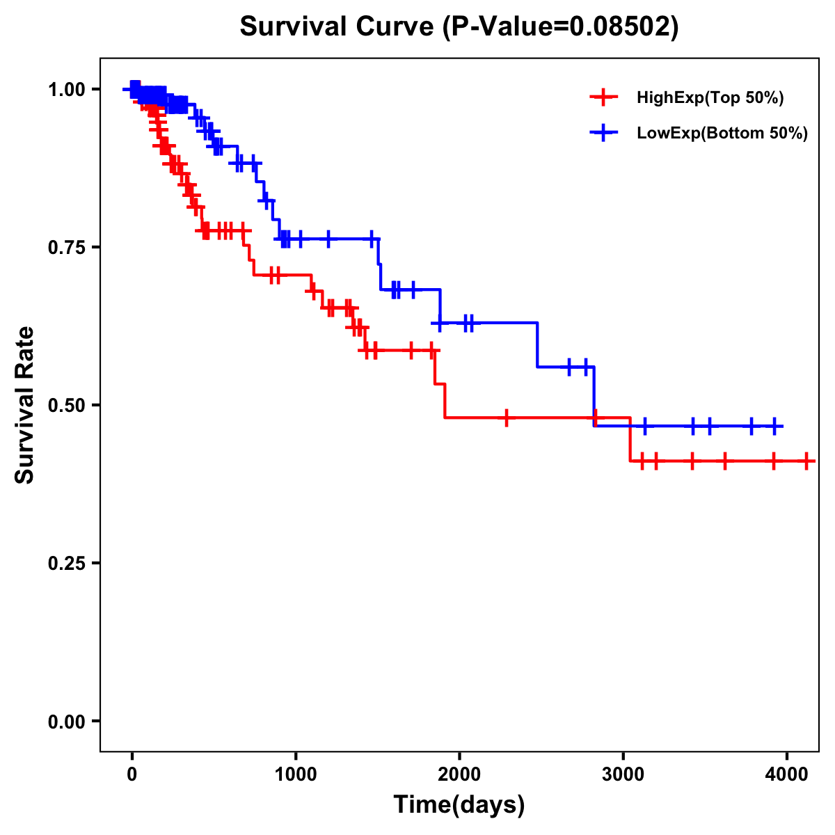 | Survival Curve of Colon Cancer on Expression Level |