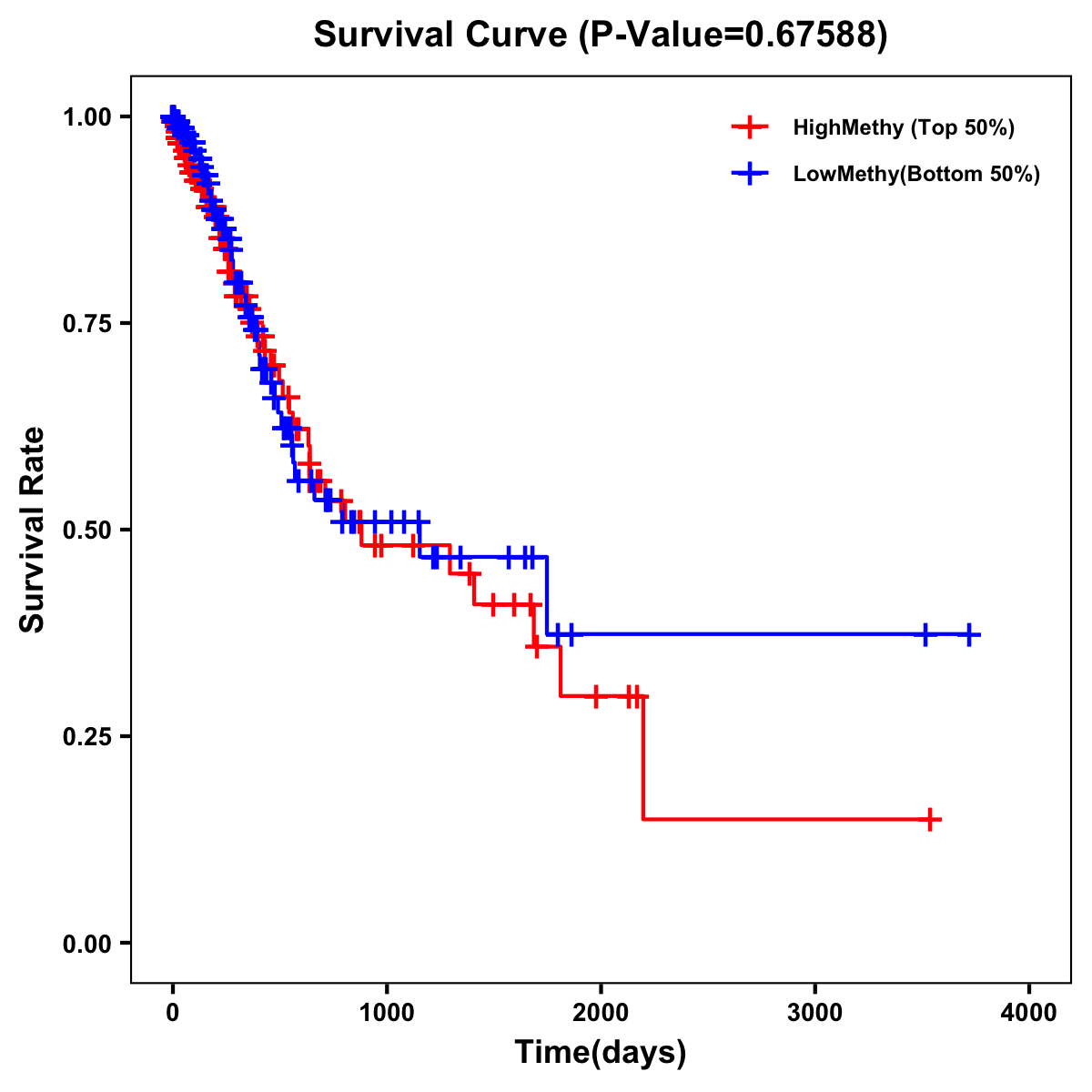 | Survival Curve of Stomach Cancer of Expression | Survival Curve of Stomach Cancer of Methylation | ||