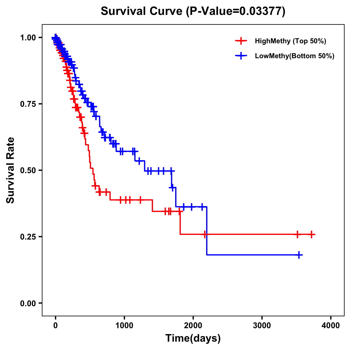 | Survival Curve of Stomach Cancer of Expression | Survival Curve of Stomach Cancer of Methylation | ||