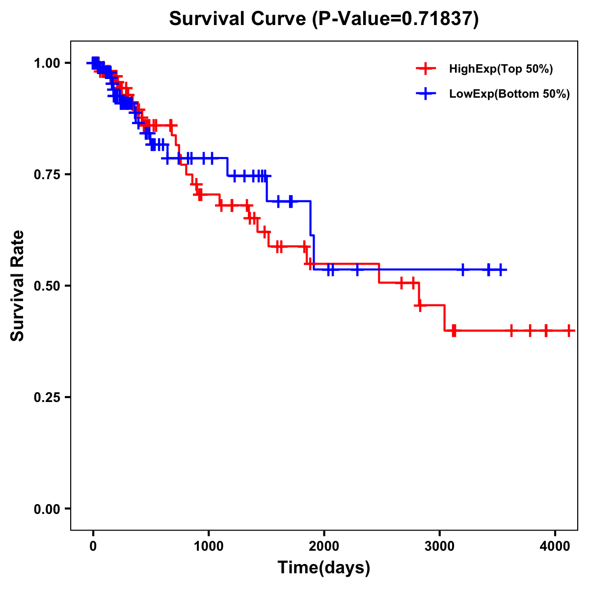 | Survival Curve of Colon Cancer on Expression Level |