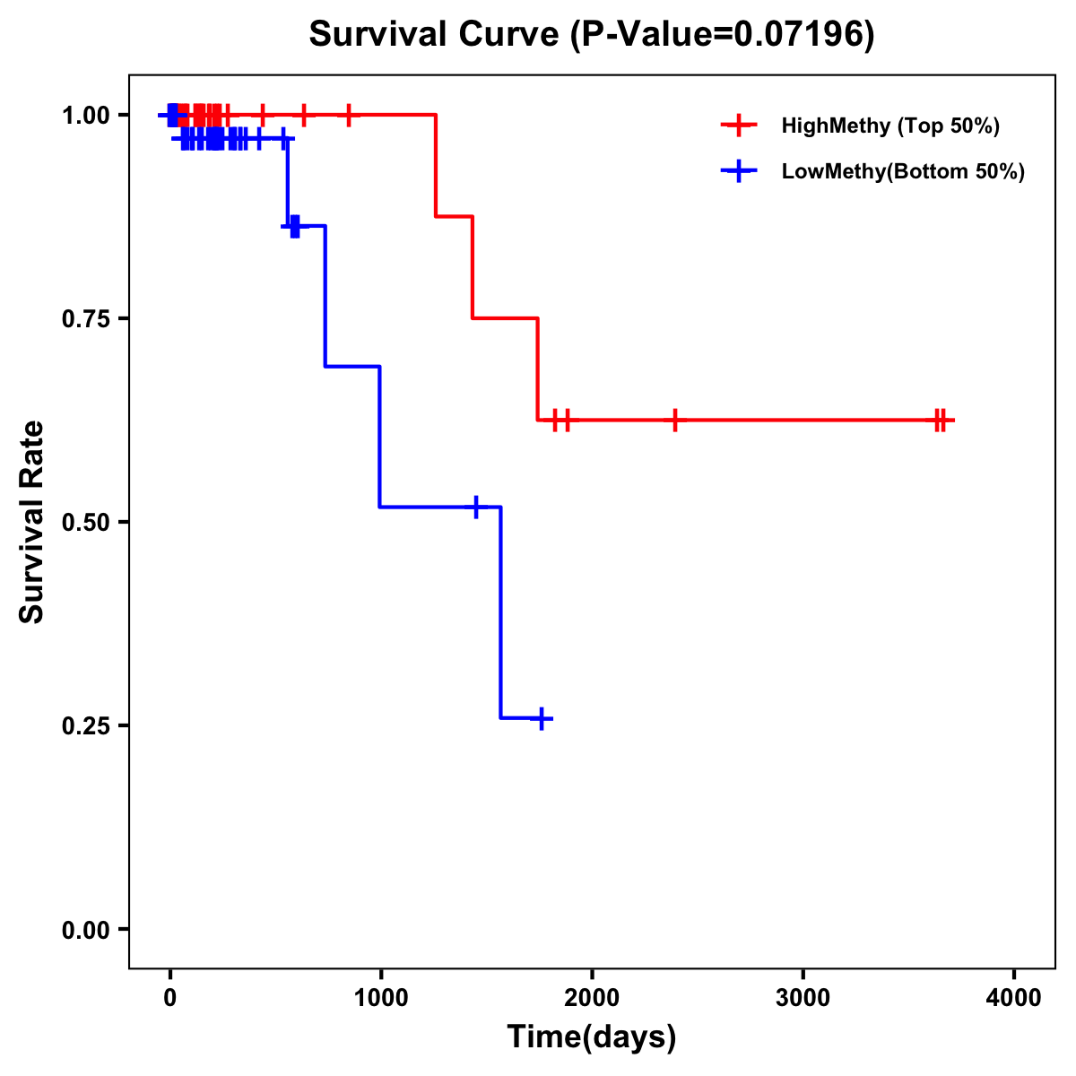 | Survival Curve of Colon Cancer on Methylation Level |