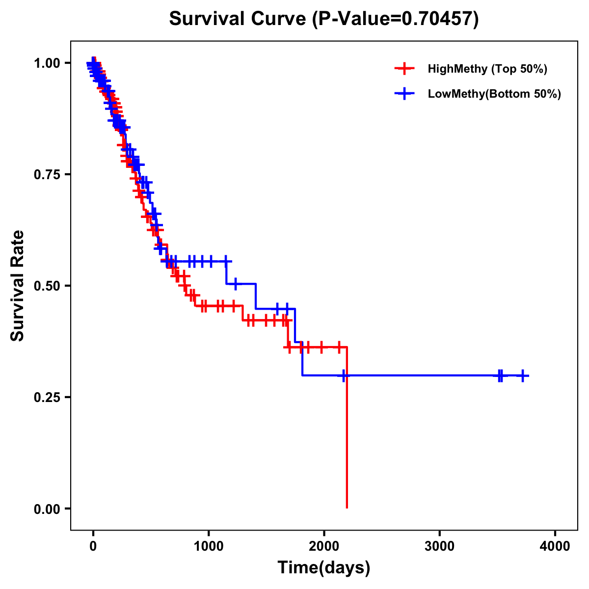 | Survival Curve of Stomach Cancer of Expression | Survival Curve of Stomach Cancer of Methylation | ||