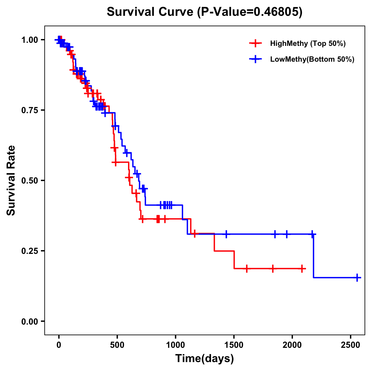| Survival Curve of Pancreatic Cancer of Expression | Survival Curve of Pancreatic Cancer of Methylation | ||