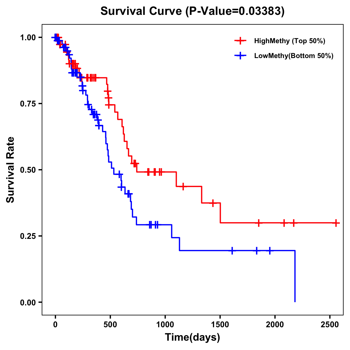 | Survival Curve of Pancreatic Cancer of Expression | Survival Curve of Pancreatic Cancer of Methylation | ||